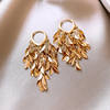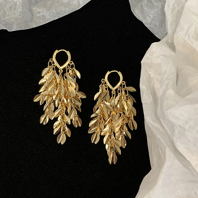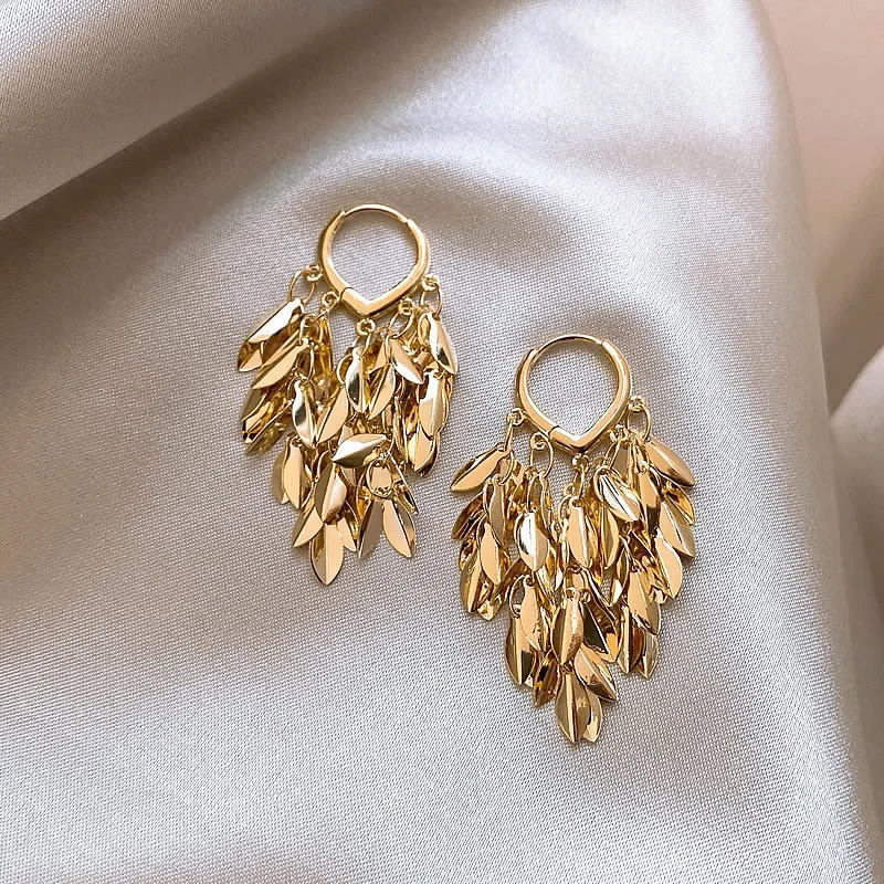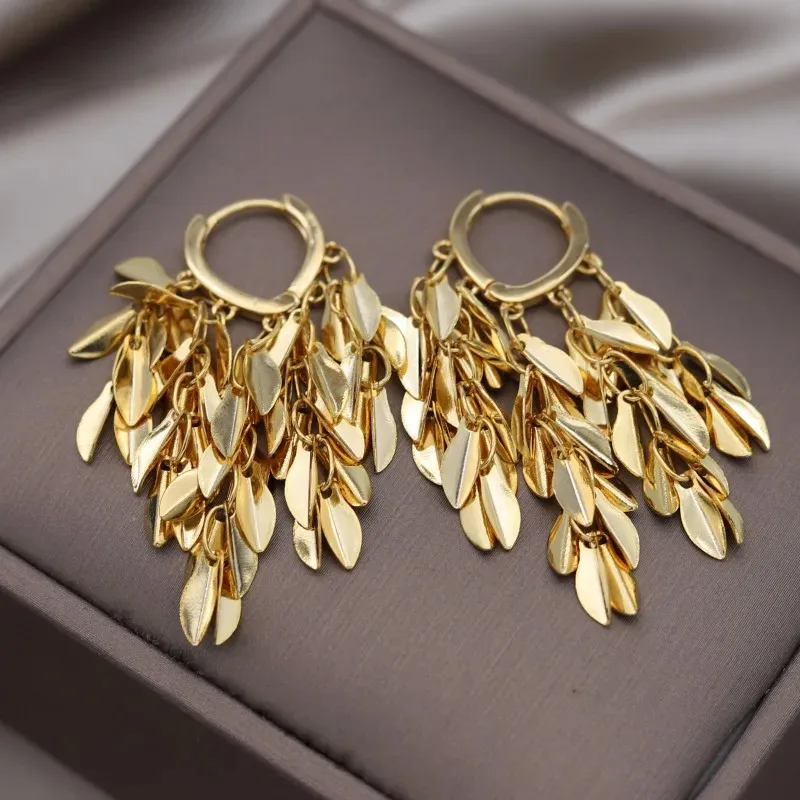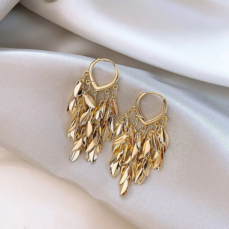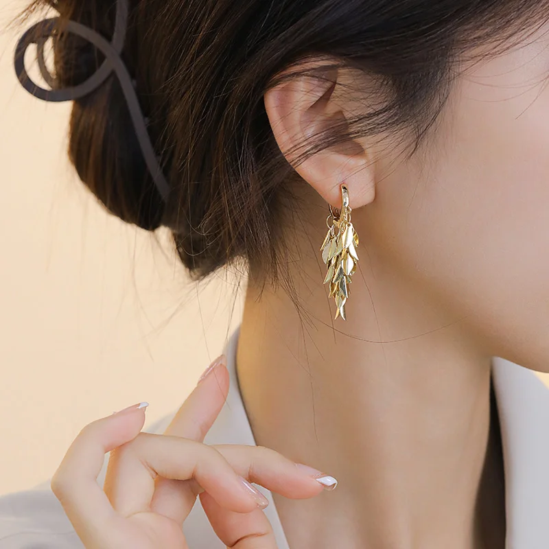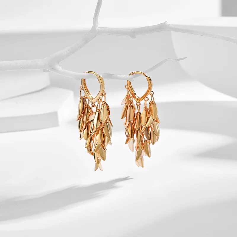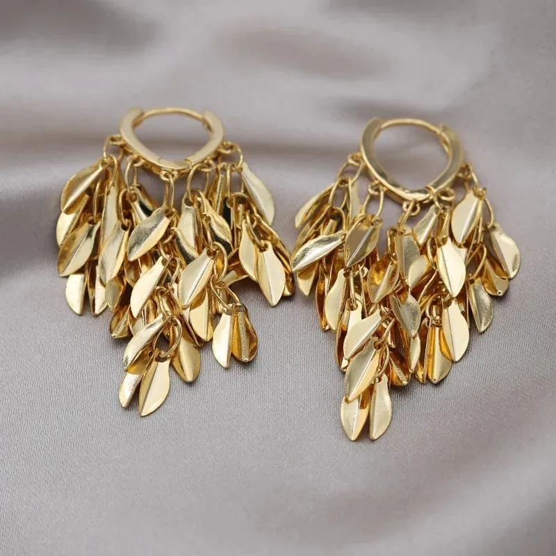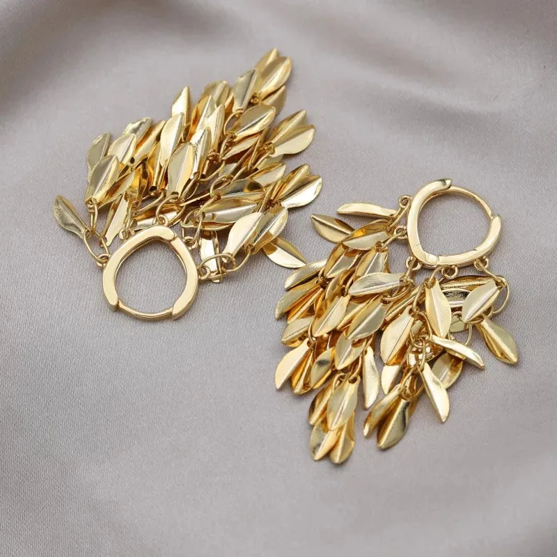 14K Gold Plated Leaf Foliage Tassels Drop Earrings