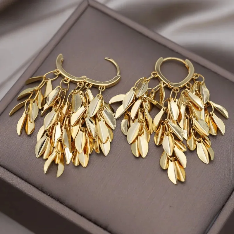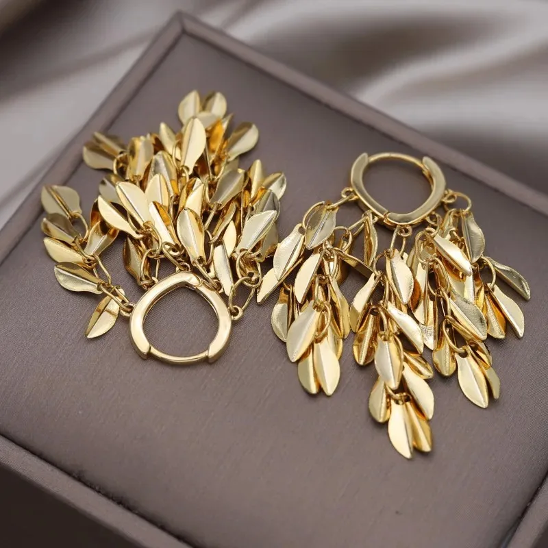 Details: Step into a storybook forest where elegance grows wild. These 14k Gold Plated Leaf Foliage Tassels Drop Earrings are a poetic tribute to nature’s quiet splendor. Each earring unfurls like a golden breeze—delicate leaf charms cascading from a gleaming hoop, swaying with every movement like sunlight through trees. Whether paired with a flowing dress or a sleek updo, these earrings transform your look into something ethereal. They don’t just accessorize — they enchant.