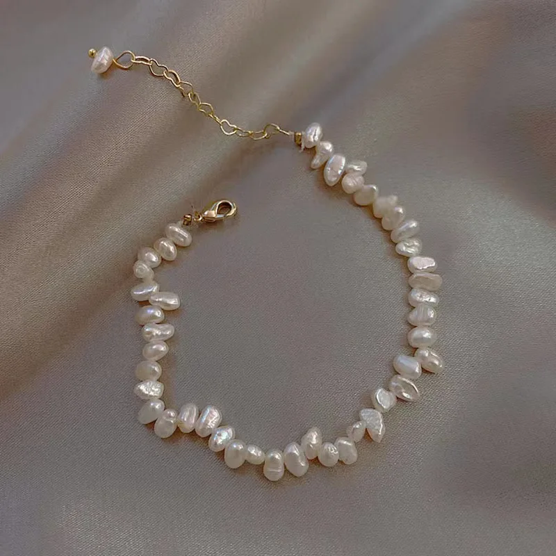 Details: This Irregular Shapes Natural Freshwater Pearls Bracelet is a harmonious blend of nature’s imperfections and timeless elegance. Each pearl, unique in shape and texture, tells a story of its own. Imagine wearing this bracelet—the cool touch of freshwater pearls against your skin, their soft irregularities a testament to authenticity. The beads, like moonlit dewdrops, capture light and reflect it in myriad directions. Whether paired with a simple dress or an elaborate gown, this bracelet whispers of hidden treasures and quiet beauty.