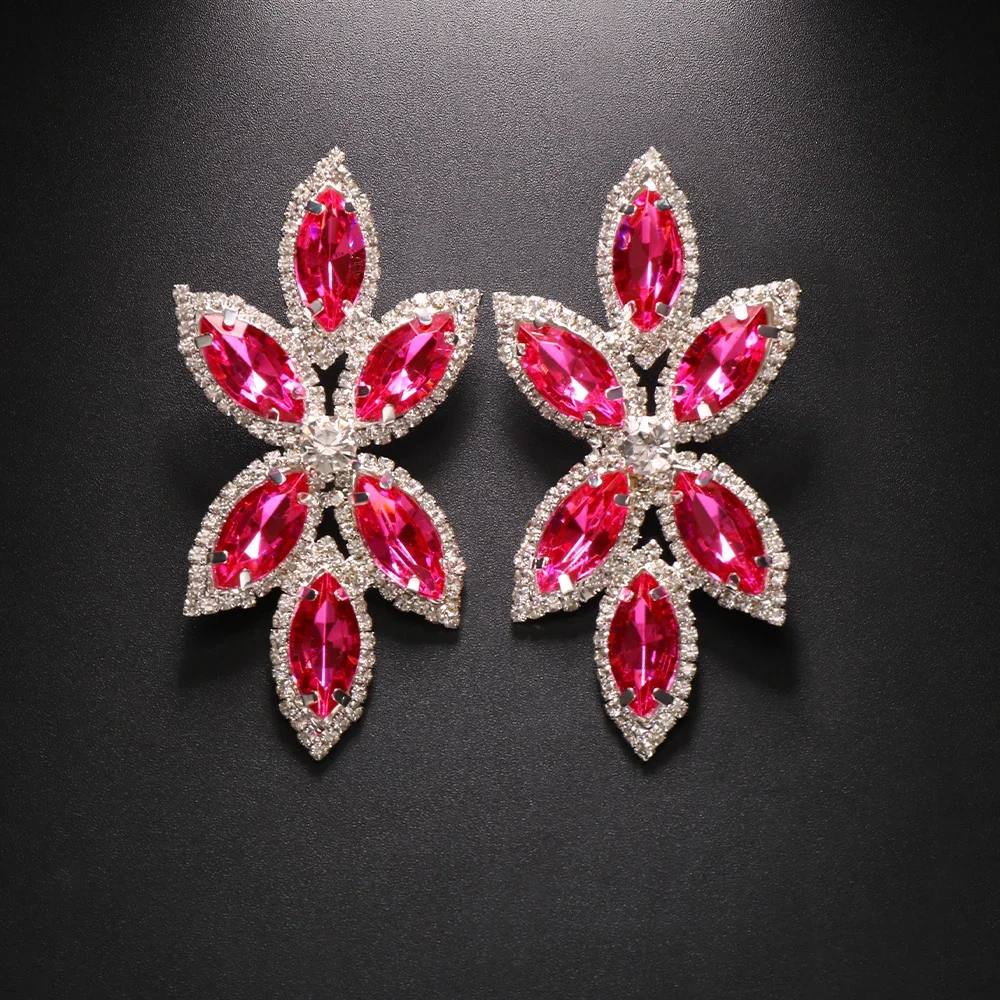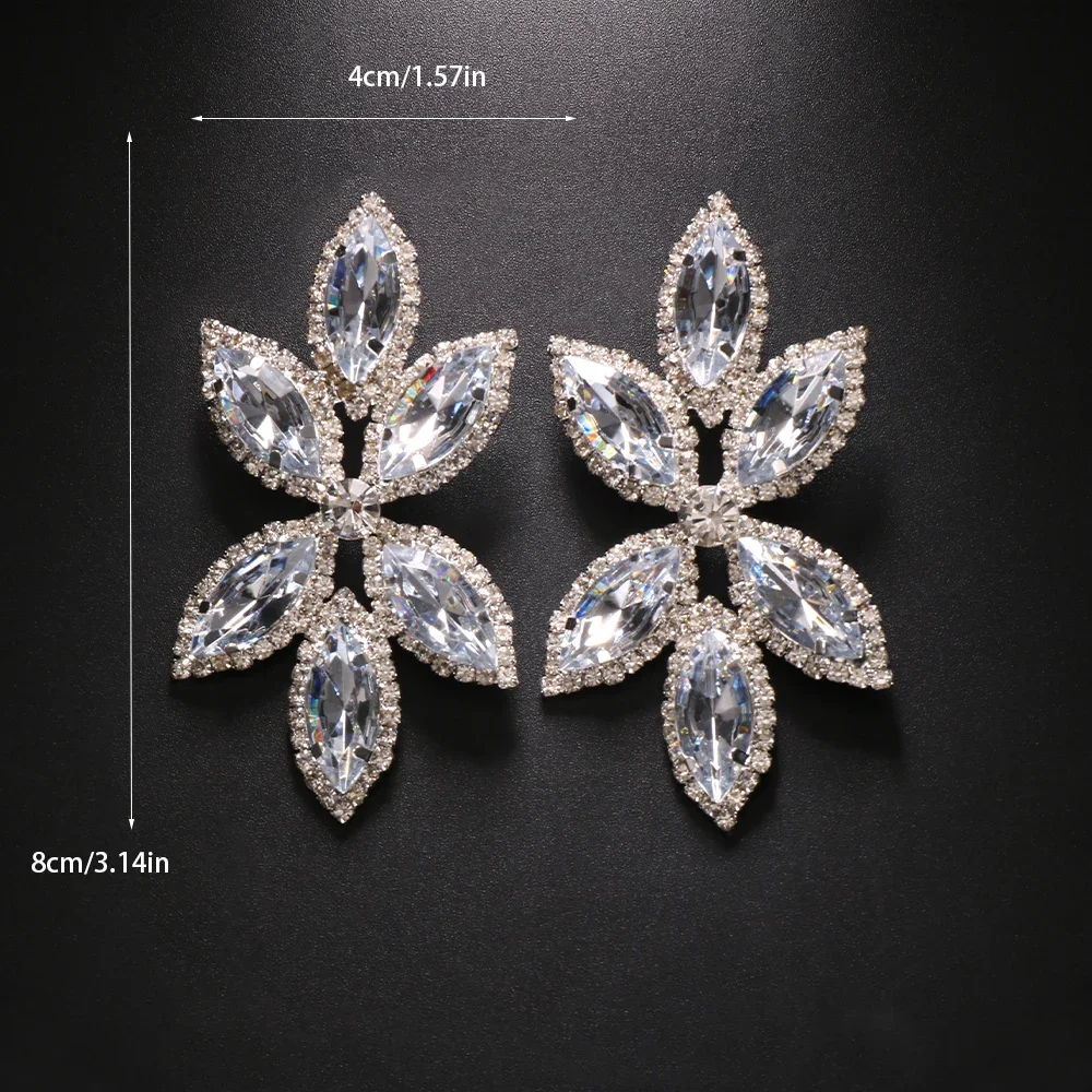 2024 New Trendy Rhinestone Flower Shaped Earrings Dinner Party Accessories Lady Fashion Personalized Jewelry Wedding Gift