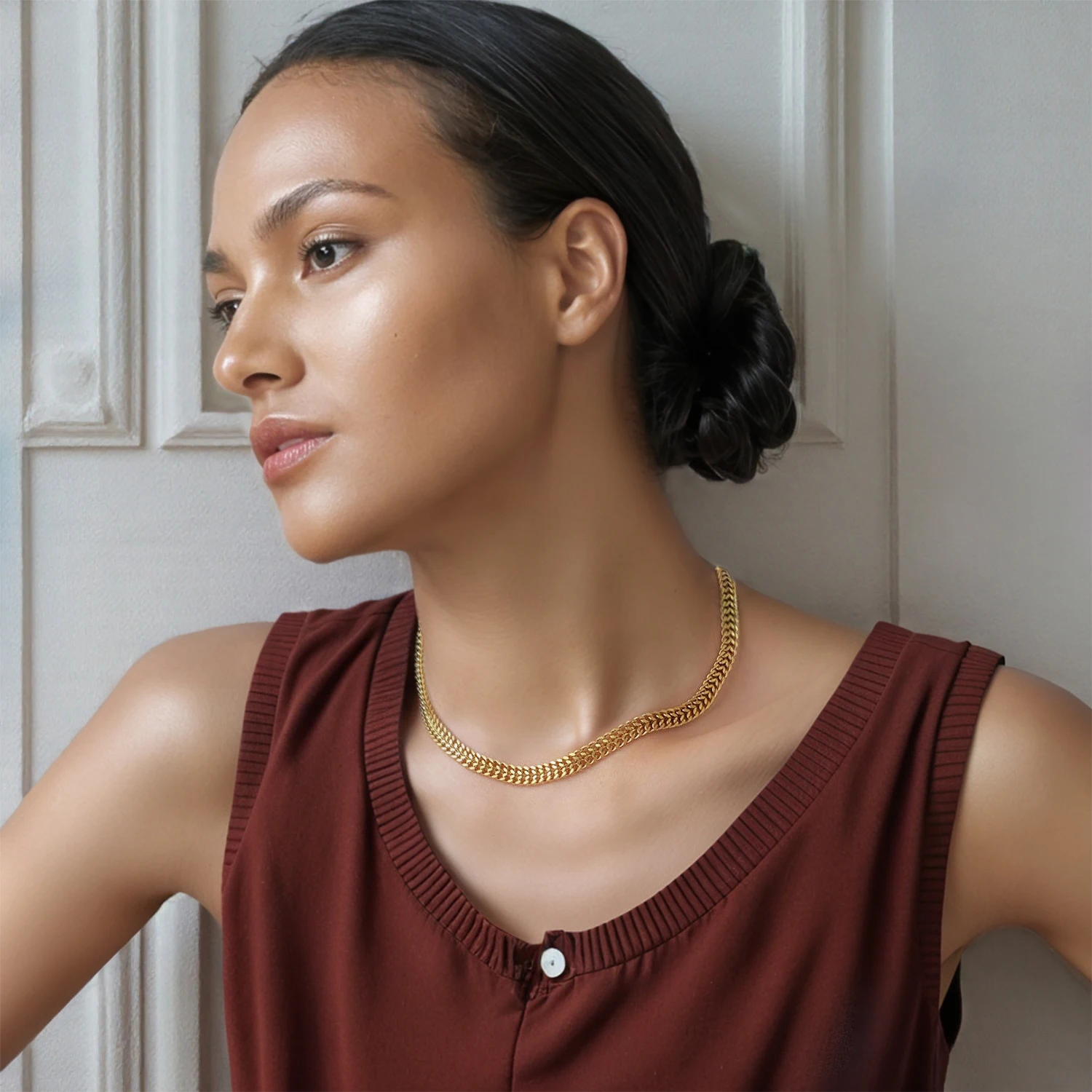 Very beautiful weaving, gold color. chain with stock, very light.