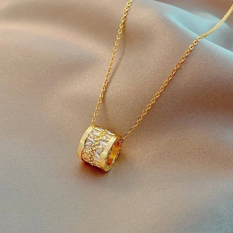 Details: Exquisite round halo ring pendant with clavicle necklace; made with 316L Stainless Steel, 18K gold-plated, and decorated with Cubic Zirconia gemstones. Sweet charming pendant necklace accentuating feminine aesthetic.High-quality fashion jewelry that lasts.