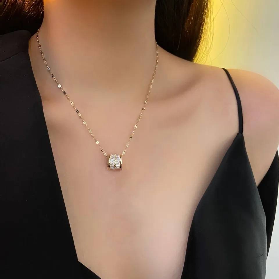 316L Stainless Steel Round Halo Ring Pendant Necklace Necklaces Pendants Women Jewelry
