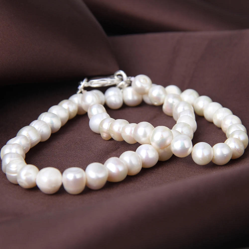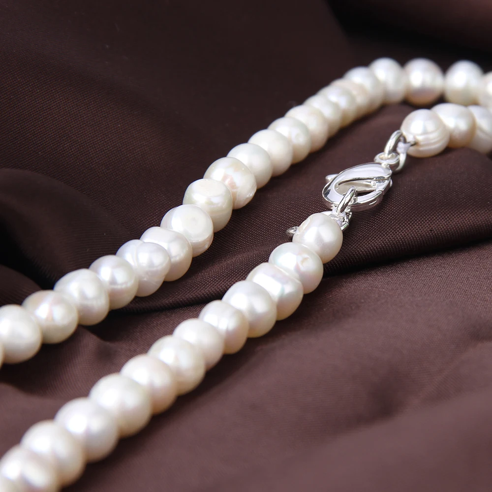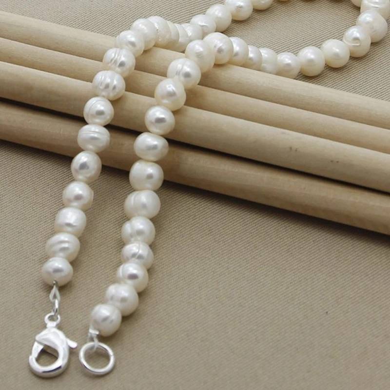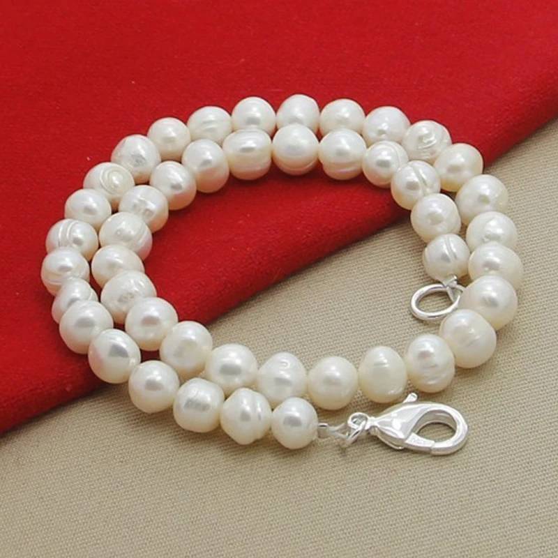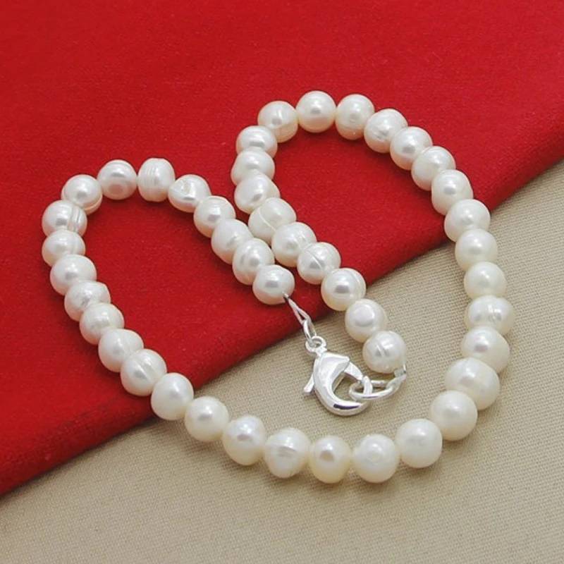Details: This necklace is a timeless classic piece that will add a touch of elegance and grace to your look. The freshwater or faux pearls are crafted to perfection and strung together in perfect harmony, mimicking the natural beauty and luster of real pearls. Pearls are considered the daughter of the moon. Pearl is also the queen of gems and the gem of queens because a pearl’s iridescence is known as luster and is unique to pearls different from any other gemstone. The 925 sterling silver clasps are a subtle but stylish feature, ensuring a secure and comfortable fit. This necklace is a simple but stunning piece that will never go out of style.