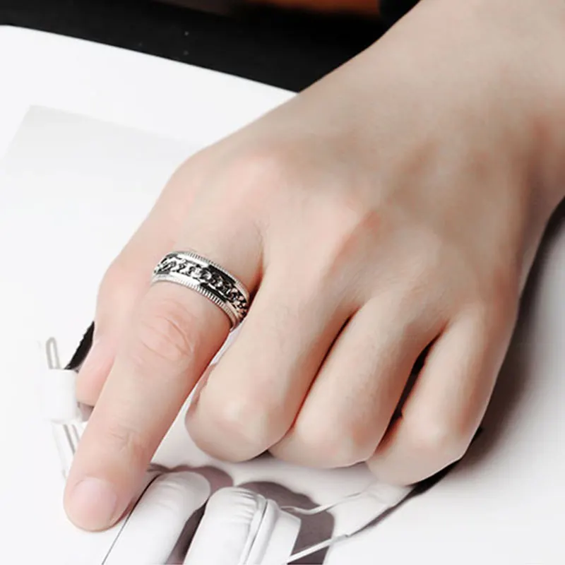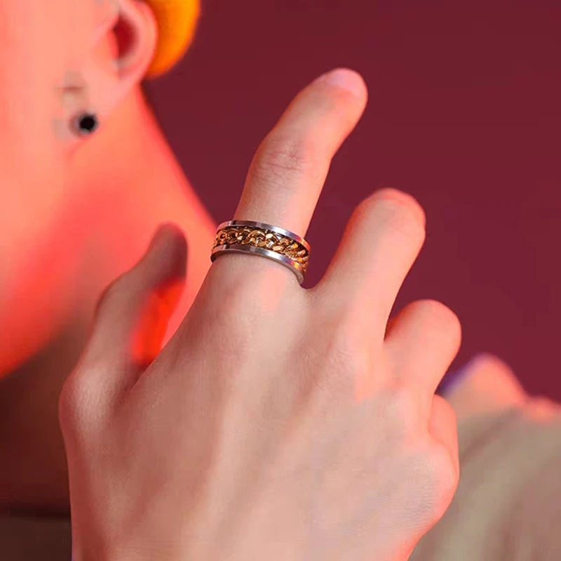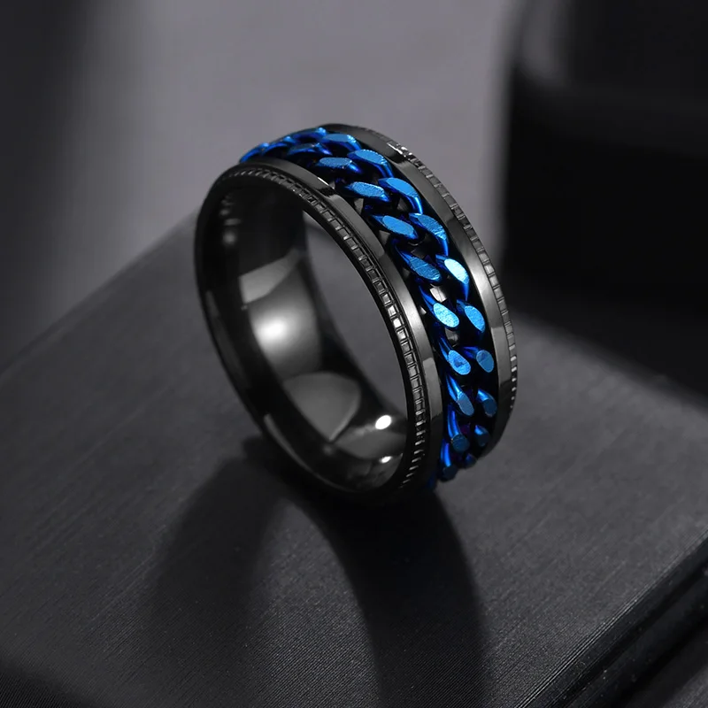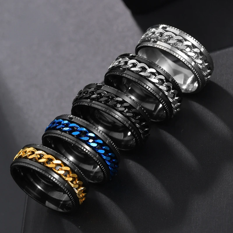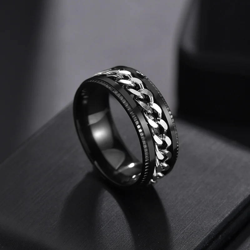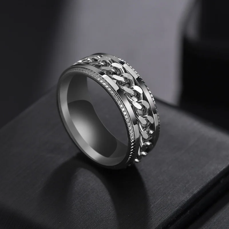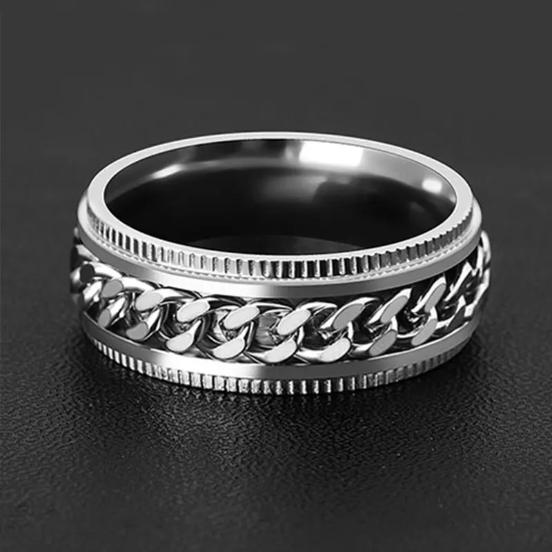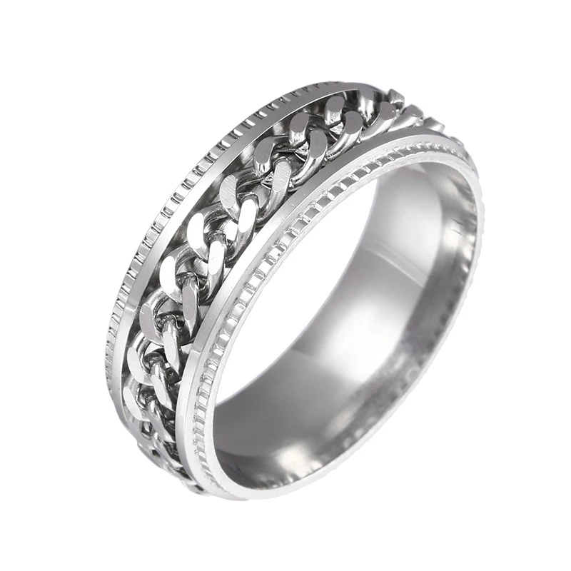8MM Stainless Steel Center Link Chain Spinner Rotates Unisex Ring Men Jewelry New Arrivals Rings Rings Women Jewelry