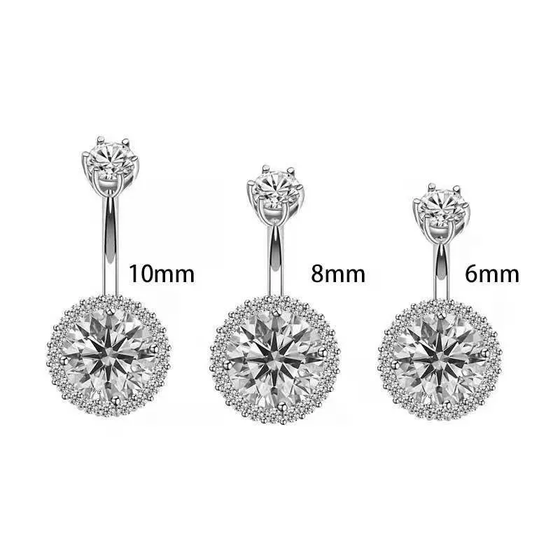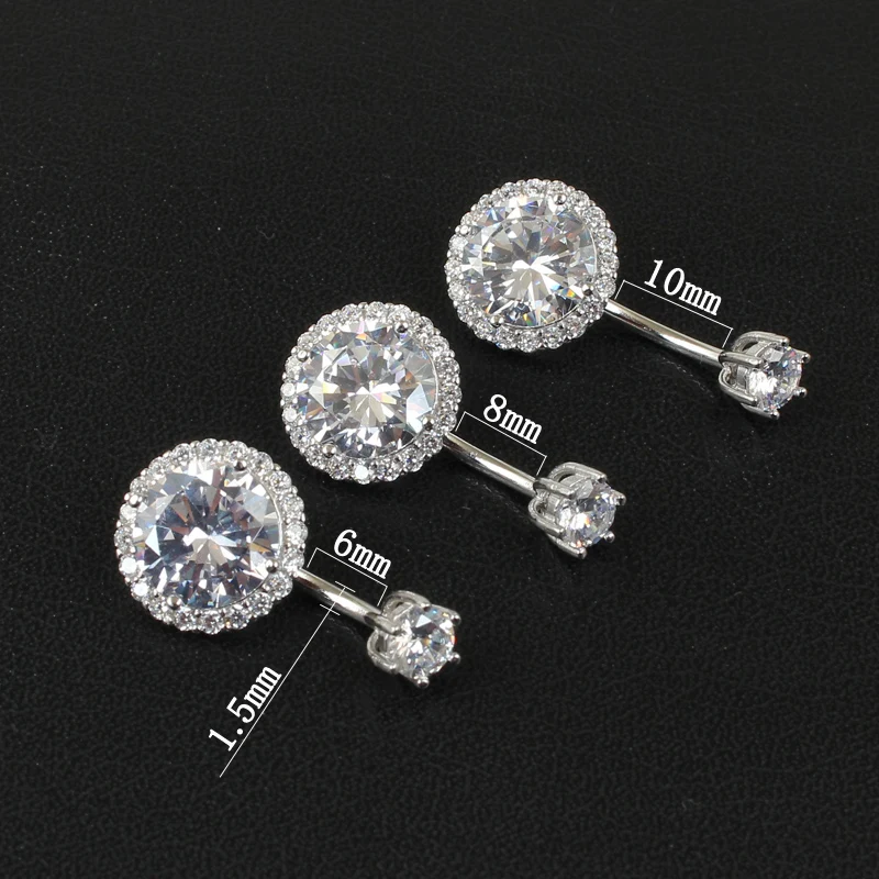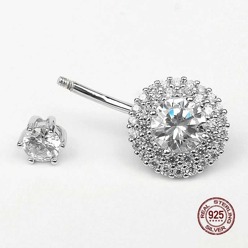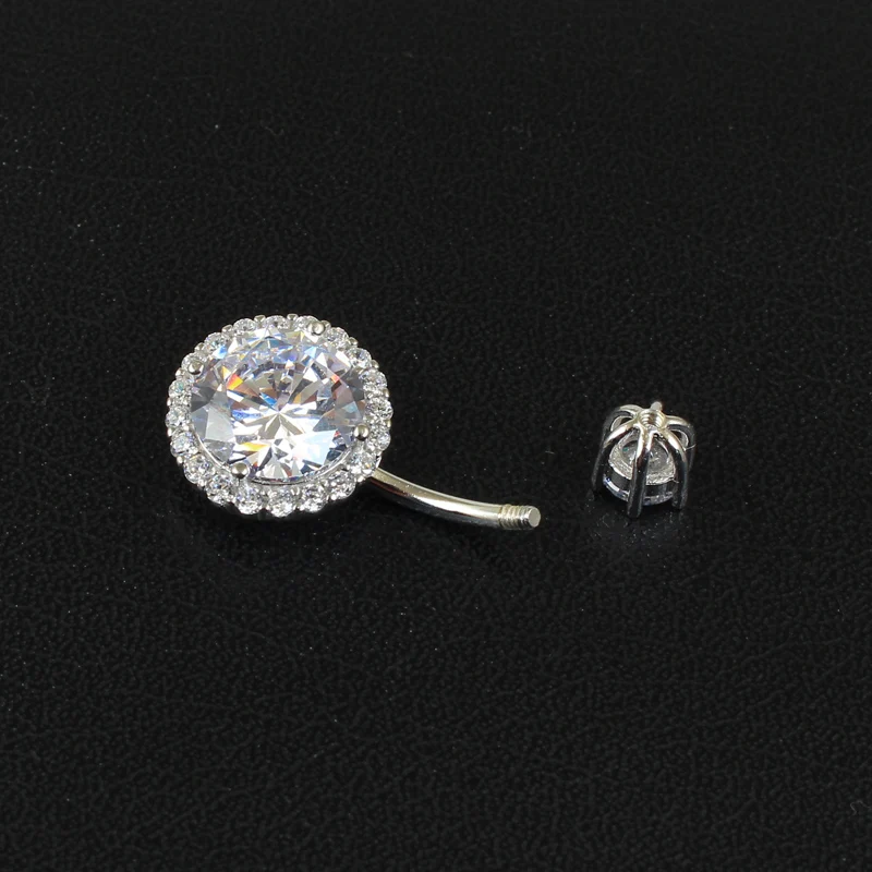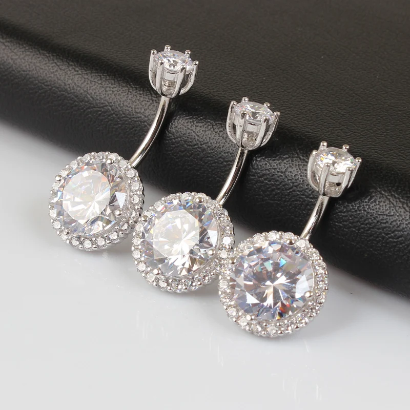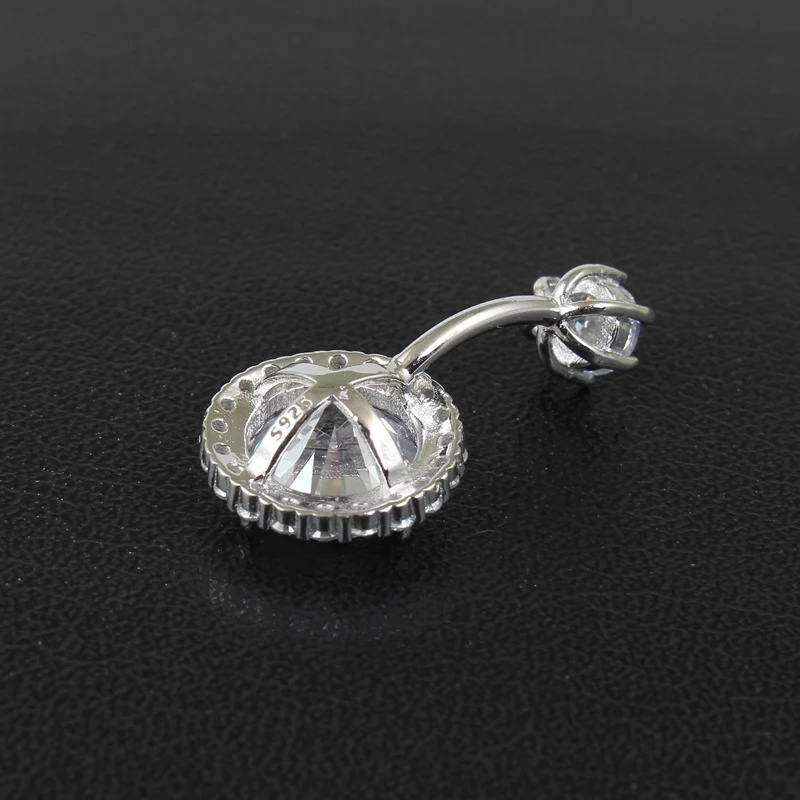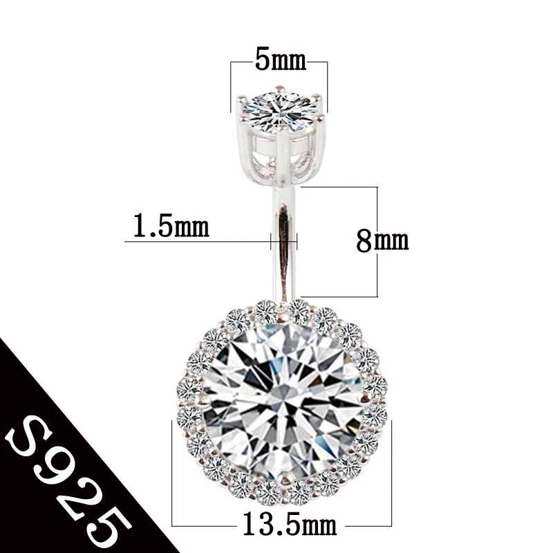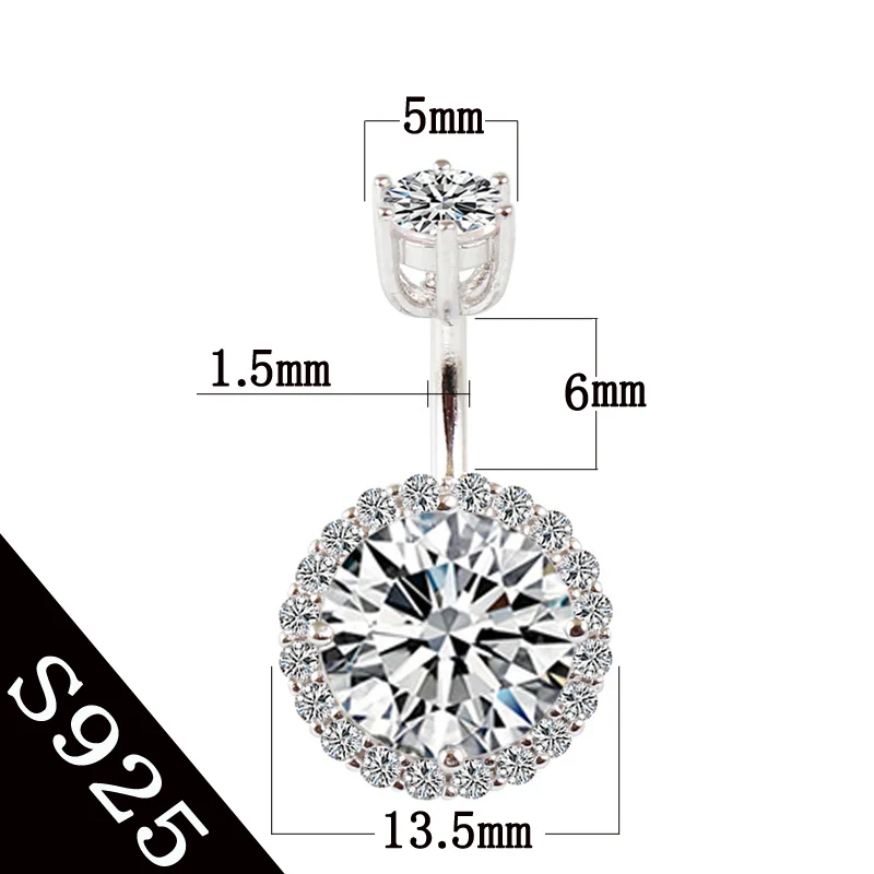 925 Sterling Silver Round Cubic Zirconia Belly Button Navel Piercing Body Jewelry