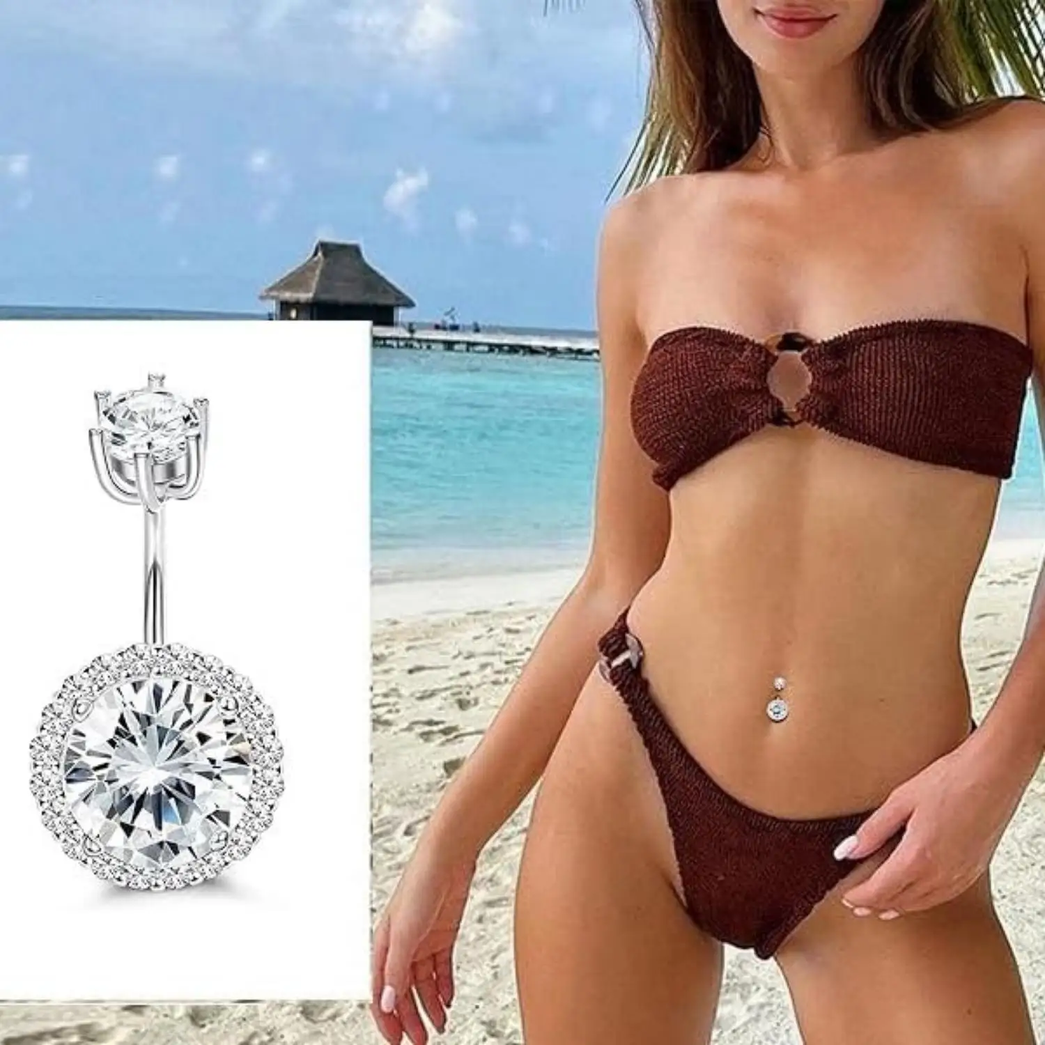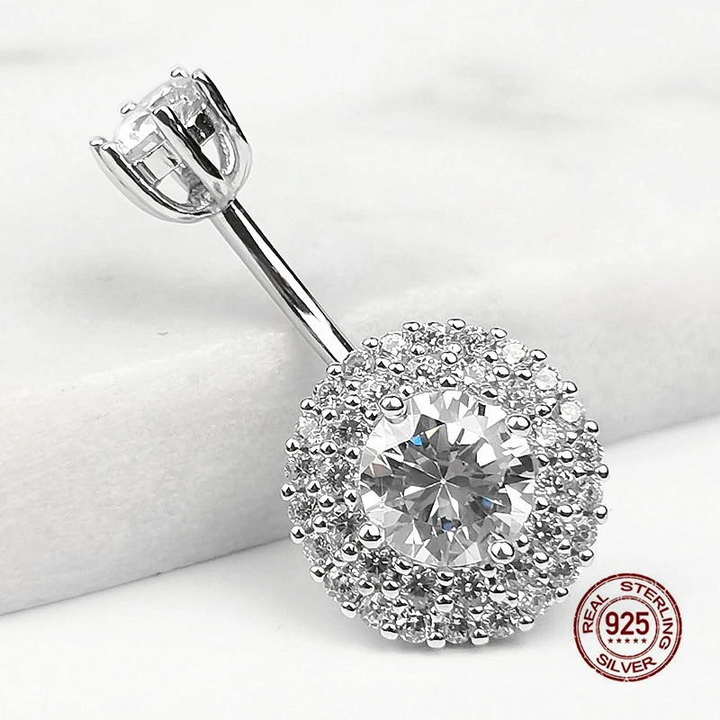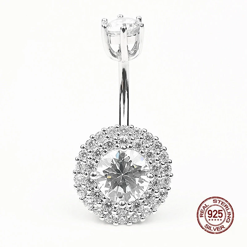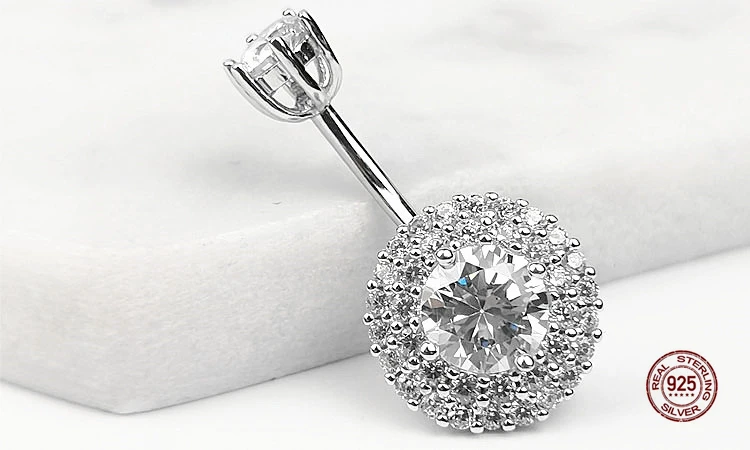 Details: Crafted from real sterling silver, this piece combines elegance with a touch of rebellion. At the heart of this piercing lies a dazzling round cubic zirconia. Its faceted surface catches light, creating a mesmerizing play of colors. The halo of smaller stones adds extra sparkle, making it a focal point that demands attention. Wearing a belly navel piercing is a celebration of self-expression. It’s a reminder that you’re unique, bold, and unafraid to stand out. Let this piece empower you and boost your confidence. Whether you’re hitting the beach, attending a music festival, or add flair to your everyday look, this piercing complements any style. Pair it with crop tops, bikinis, or high-waisted jeans—it is your canvas to create.