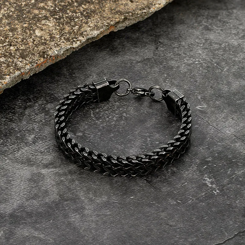 Details: Embrace rugged elegance with this meticulously crafted bracelet. Each link tells a story — a fusion of strength and vintage allure. The interlocking links create a robust yet flexible structure. The matte finish adds depth, reminiscent of antique craftsmanship. The dark patina enhances the intricate details, making each link a work of art. Wear it proudly — it’s more than a bracelet; it’s a statement. The stainless steel construction ensures durability, while the design exudes masculine confidence. The vintage-inspired look complements any style. Pair it with jeans and a leather jacket for an edgy vibe. Imagine the weight of this bracelet on your wrist—the echoes of history, the modern twist. It’s more than an accessory; it’s a conversation starter.