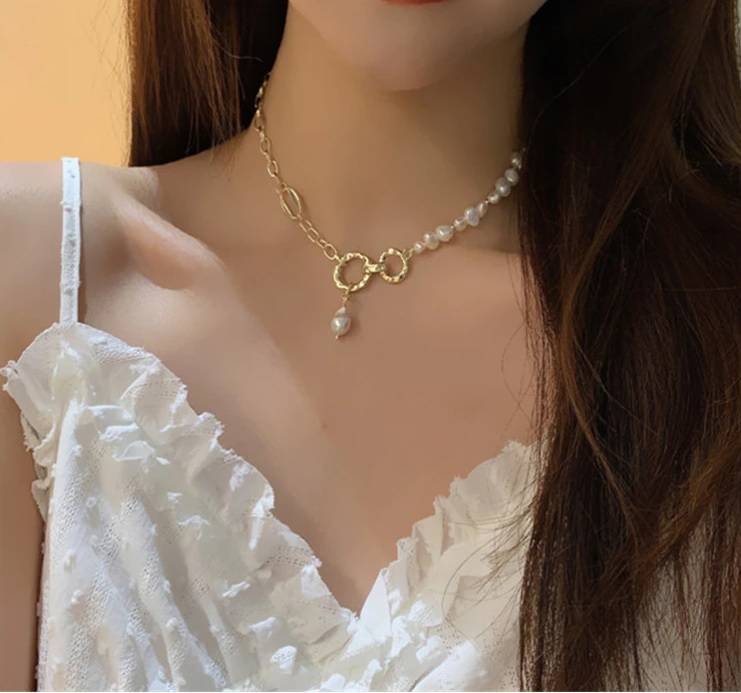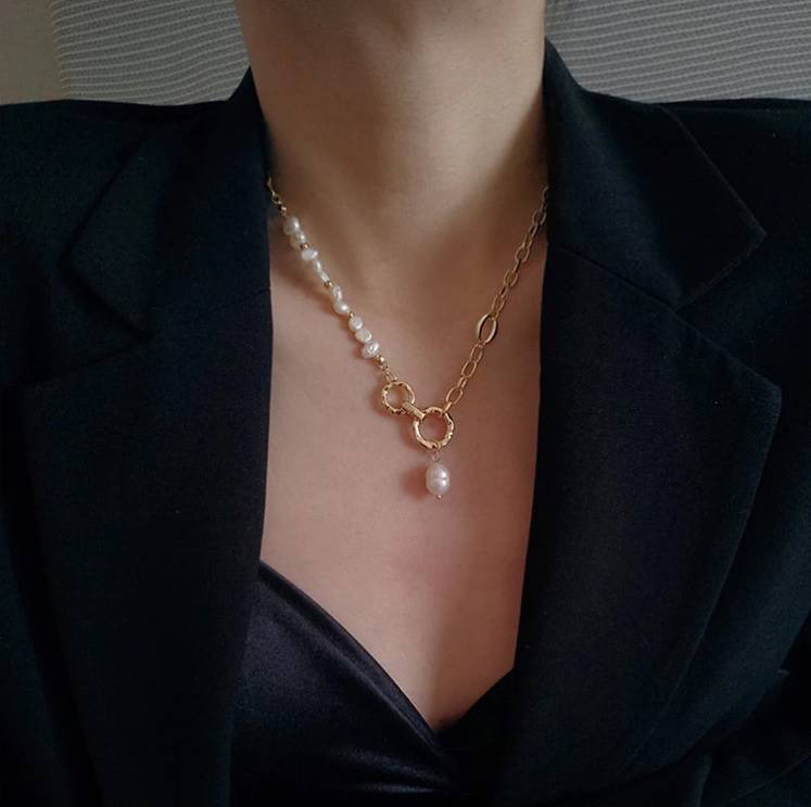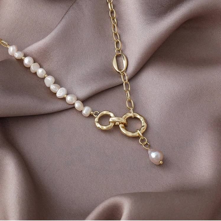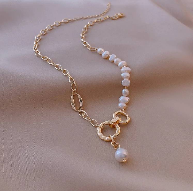 I really like the design of the necklace. It is a pity that the pearls used are not enough of good quality. I hope the metal color will not rub off.