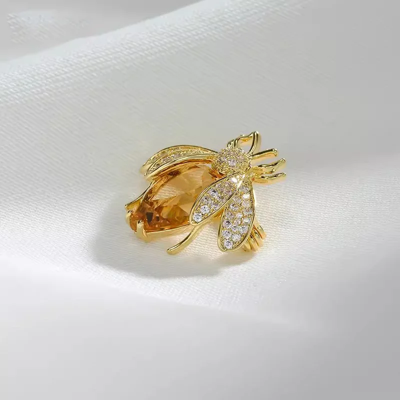 Details: Let your style take flight with this exquisite bee-shaped brooch, a radiant fusion of artistry and elegance. The body gleams with a faceted amber-hued gemstone, capturing the warmth of golden sunlight, while the wings and head shimmer with a constellation of clear rhinestones — each one meticulously placed to reflect light like dew on morning petals. Whether you’re drawn to its symbolism of diligence and transformation or simply enchanted by its sparkling beauty, this brooch is more than an accessory—it’s a statement. Ideal for nature lovers, vintage collectors, or anyone who appreciates wearable art.
