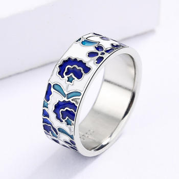 S925 Blue Enamel Azure Blossom Flower Floral Cocktail Ring