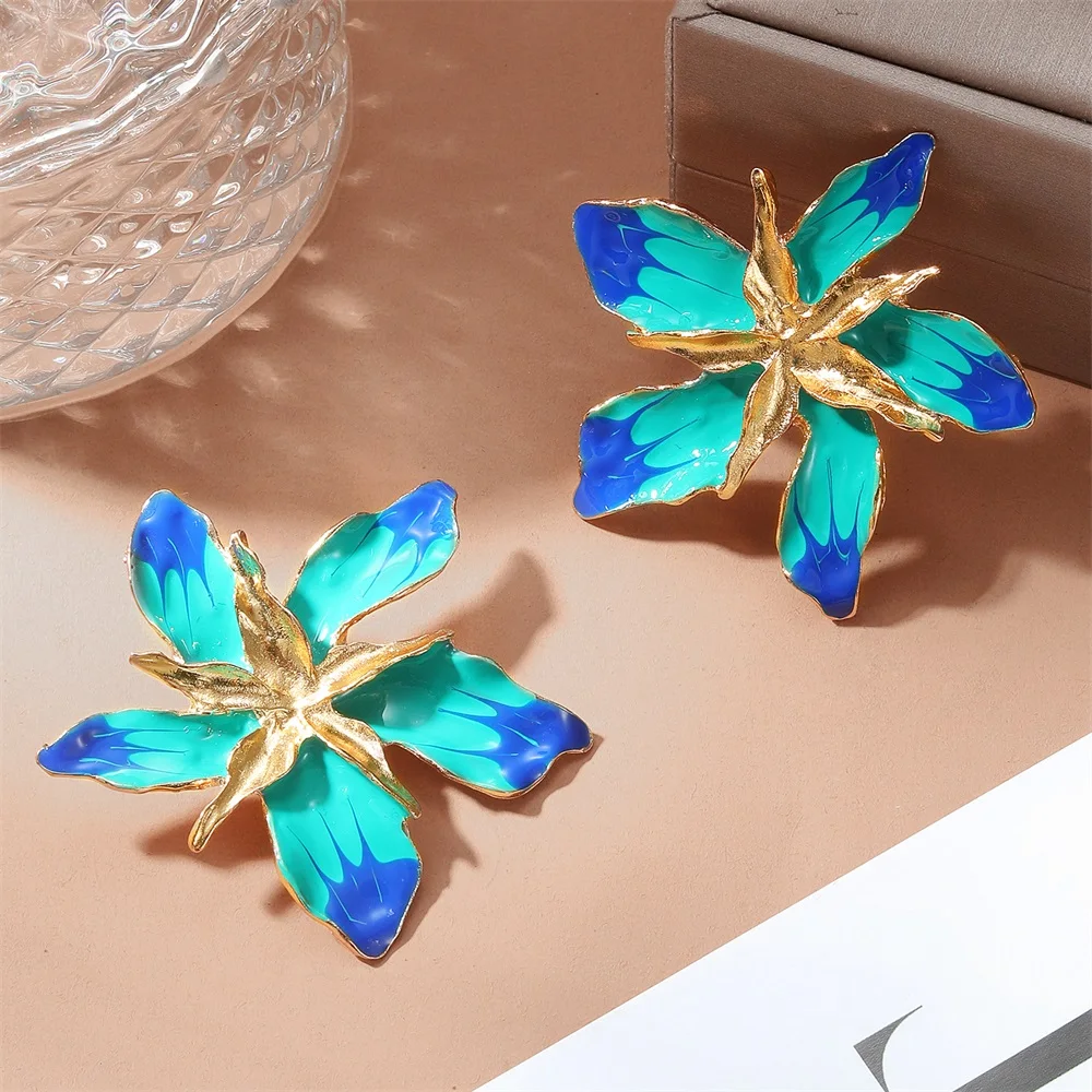 Details: These orchid-shaped drop earrings are a stunning accessory for any occasion. They are crafted from zinc alloy with blue, pink, or green plating and have a textured finish that reflects light beautifully. The earrings are designed to resemble flowers with six petals each, creating a delicate and feminine look. Make a bold statement while looking sophisticated; wear them to a cocktail party or an evening outing. An absolute must-have piece of fashion jewelry in your collection!