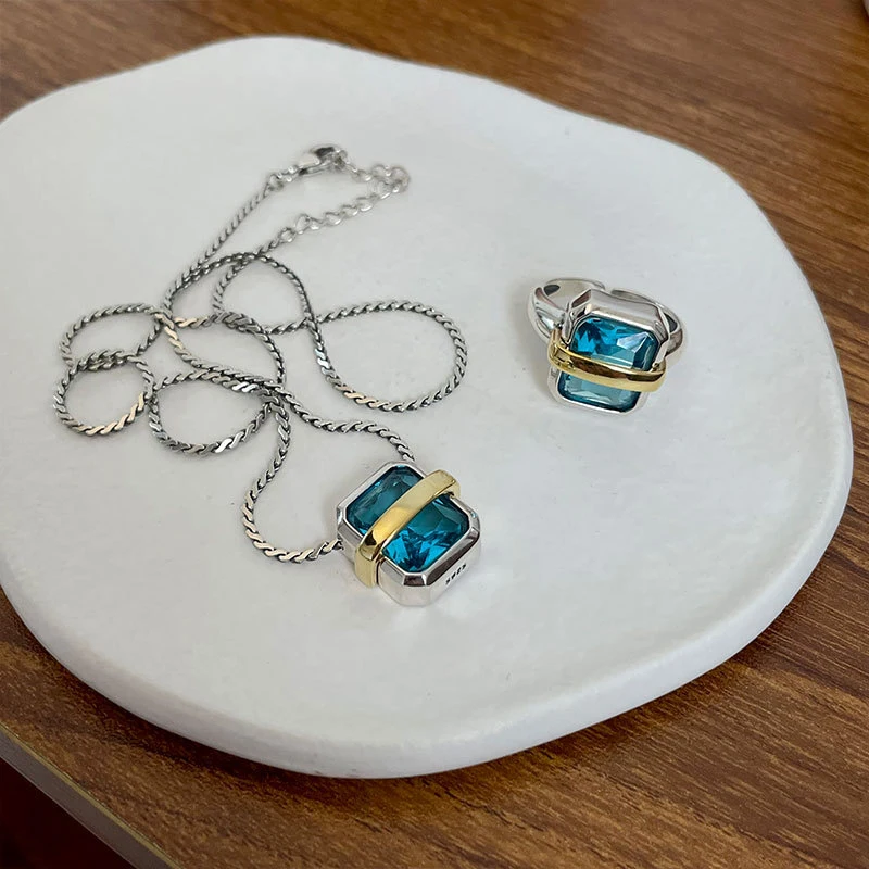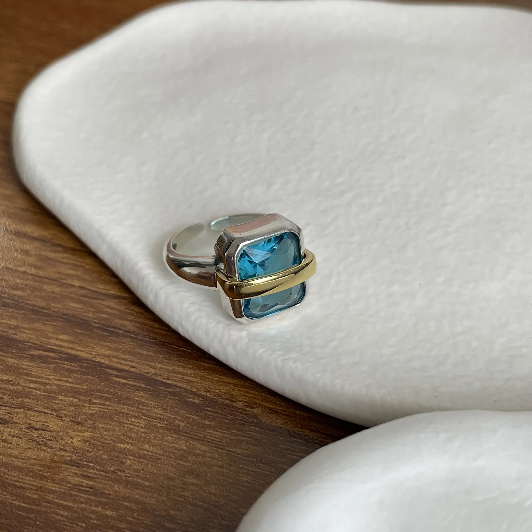 Details: This stunning open ring seamlessly blends timeless elegance with contemporary flair. Crafted from high-quality 925 Sterling Silver, it’s a piece that transcends trends and becomes an enduring part of your jewelry collection. The focal point of this ring is the mesmerizing blue cubic zirconia gemstone. With its brilliant square cut, it captures light from every angle, creating a dazzling play of colors. The vibrant blue hue evokes feelings of serenity and sophistication. The unique open band design adds an unexpected twist to the classic ring silhouette. The silver band wraps around your finger, creating an airy, contemporary look. At the top, the band overlaps, securing the gemstone in place. The subtle gold-tone accent enhances the contrast and adds a touch of luxury. Whether you’re dressing up for a special occasion or adding a touch of elegance to your everyday style, this ring fits the bill. Pair it with other silver jewelry for a coordinated ensemble, or let it stand alone as a statement piece.