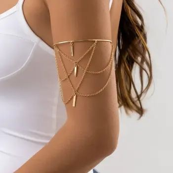 Upper Arm Tassel Bar Open Bracelet Bangle