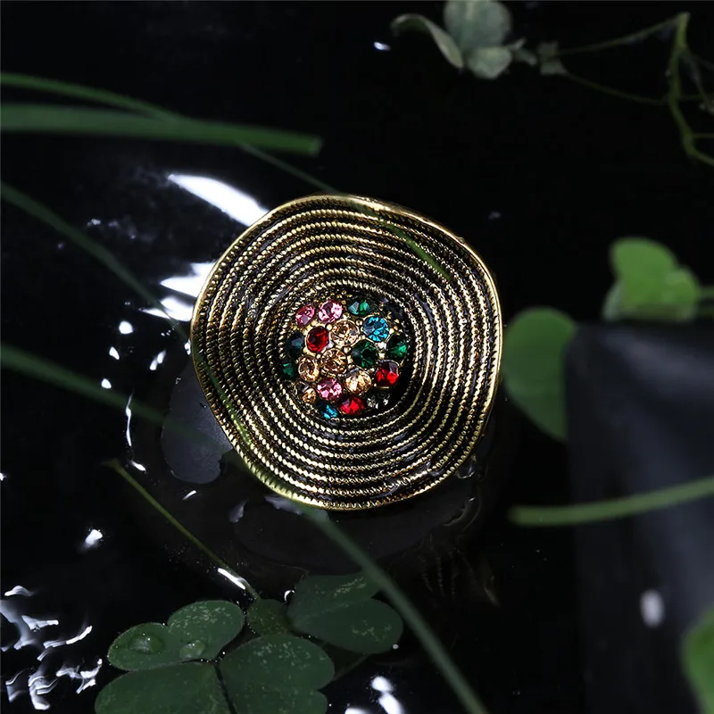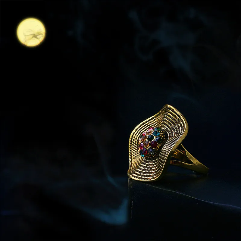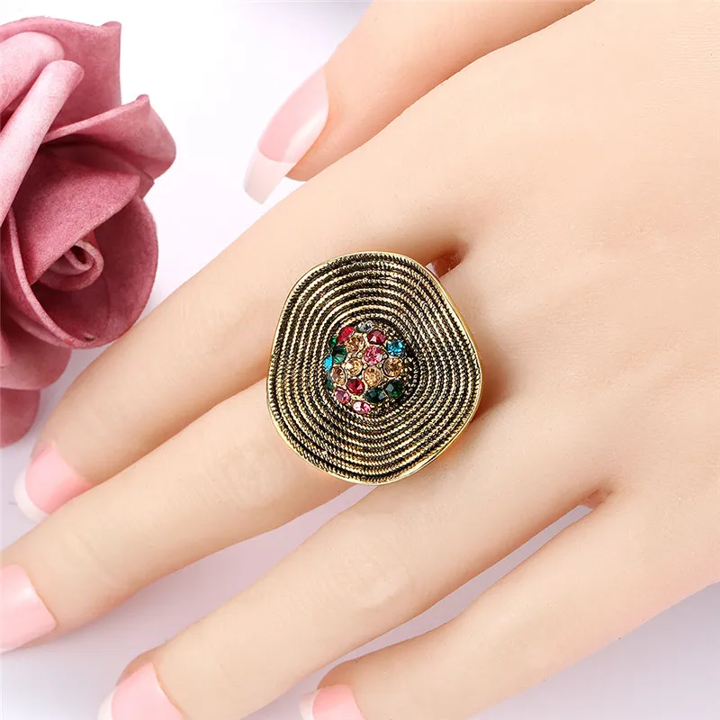 Beautiful ring! In the photo the color in looks darker, actually nice color dark gold, not lemon. Goes in size, took 10 for 20.