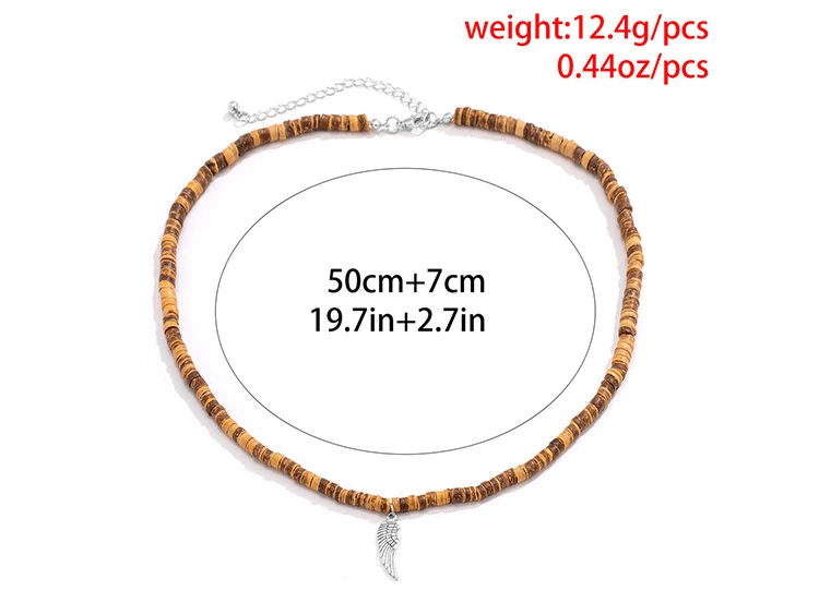 Bohemian Style Wooden Beads Wing Pendant Necklace