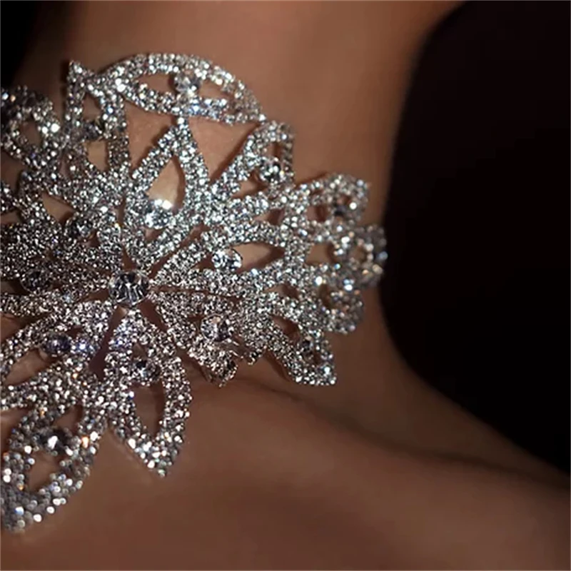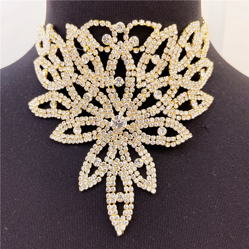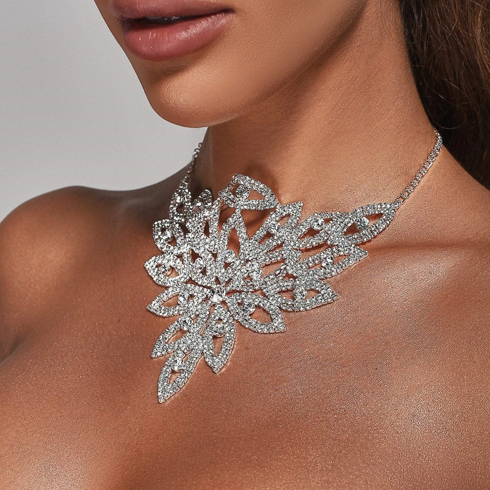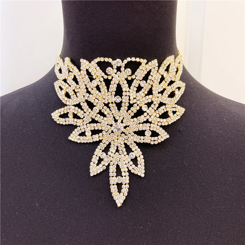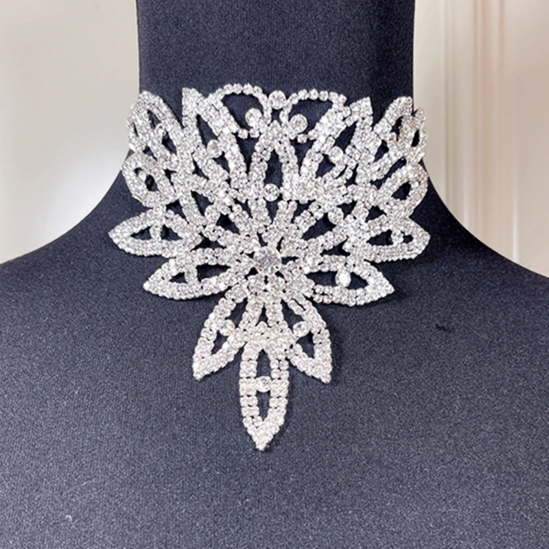 Bridal Rhinestone Flower Floral Collar Choker Necklace