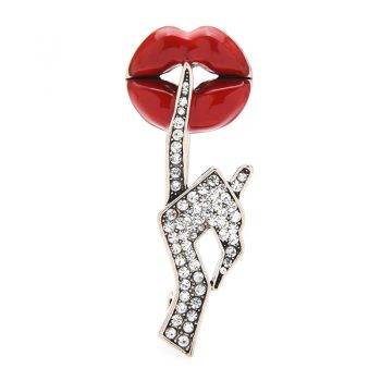 Women Hush Shhh Finger Enamel Rhinestones Brooch