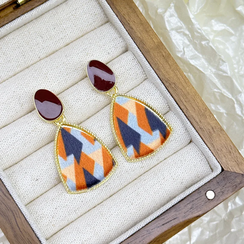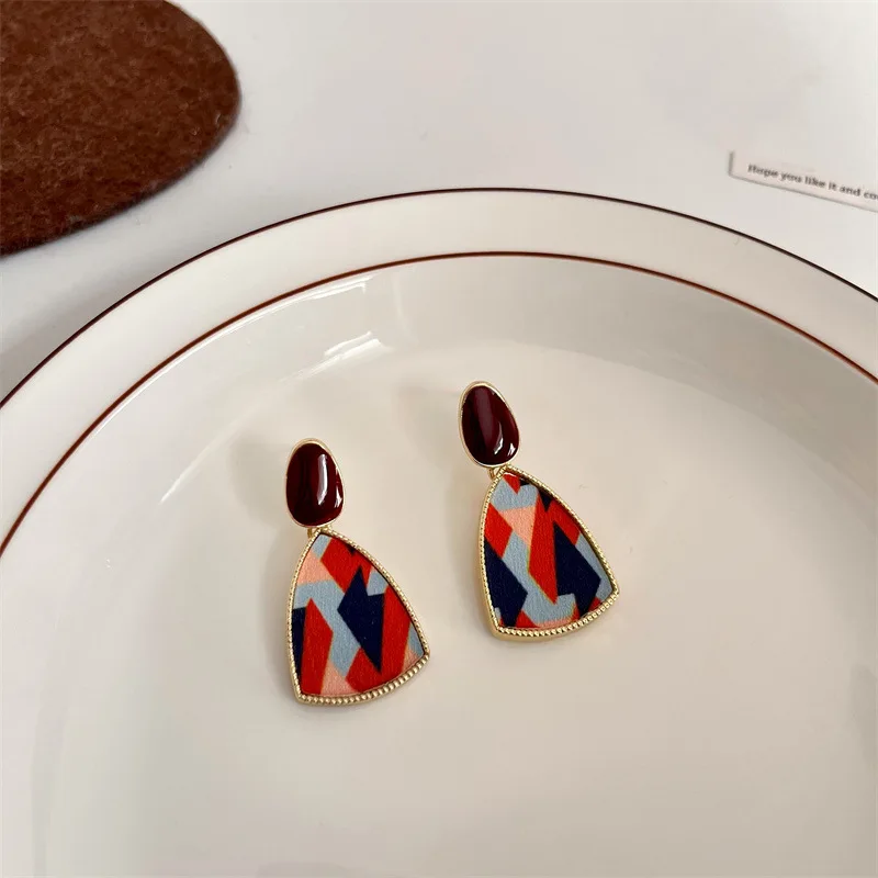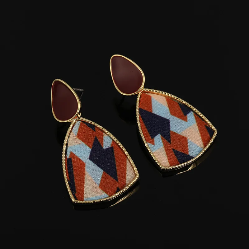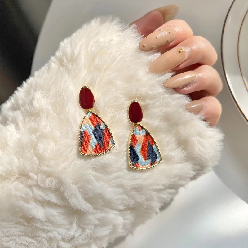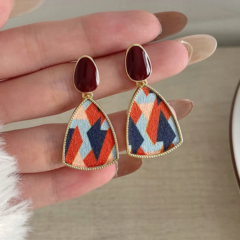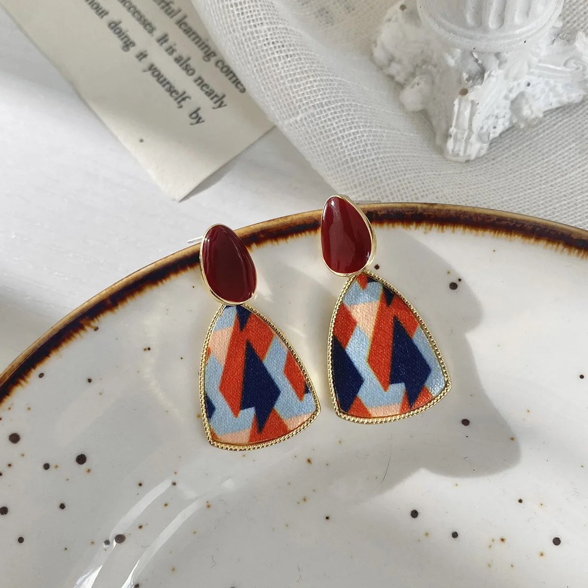 Burgundy Waterdrop Patchworks Cloth Drop Earrings