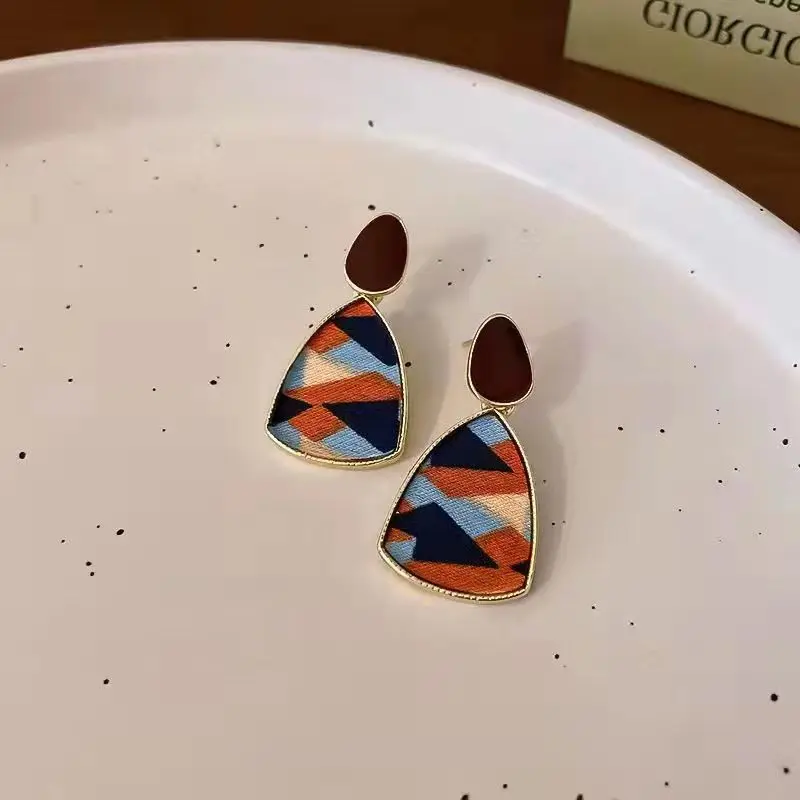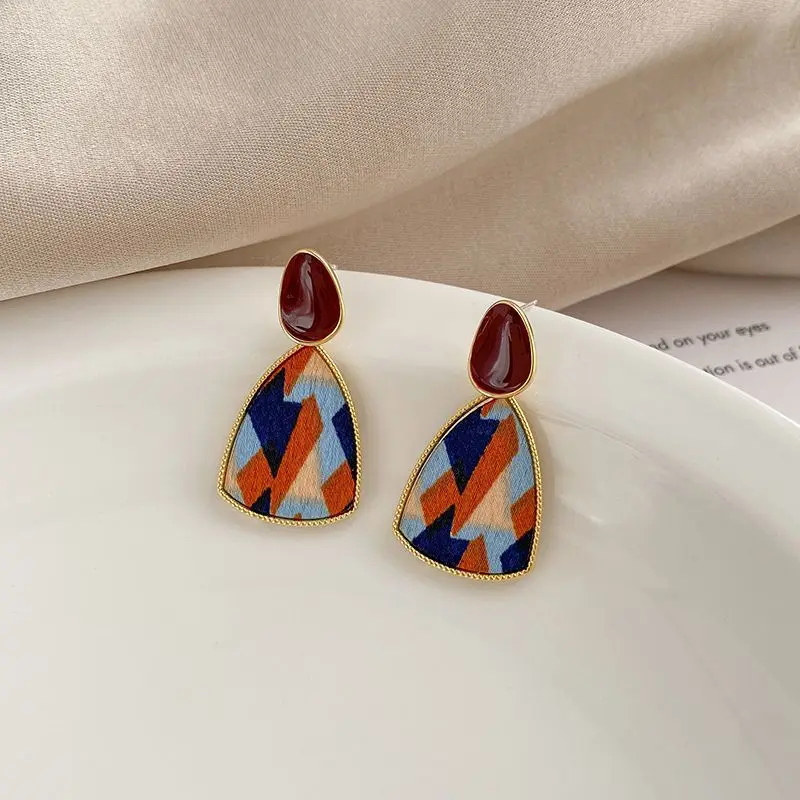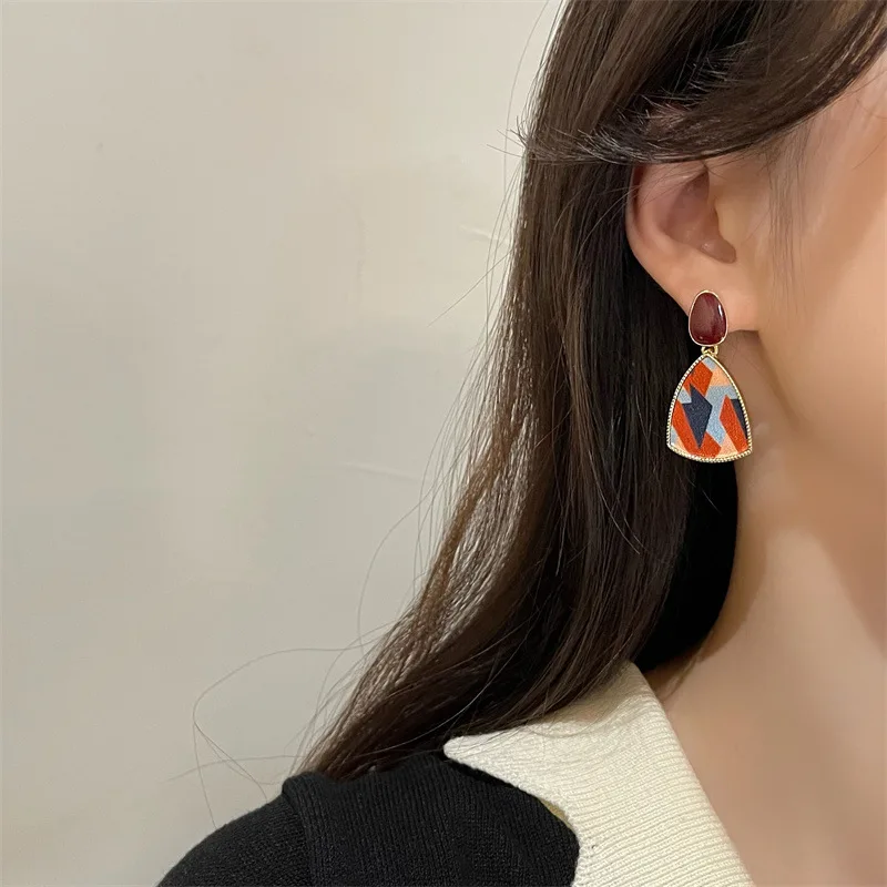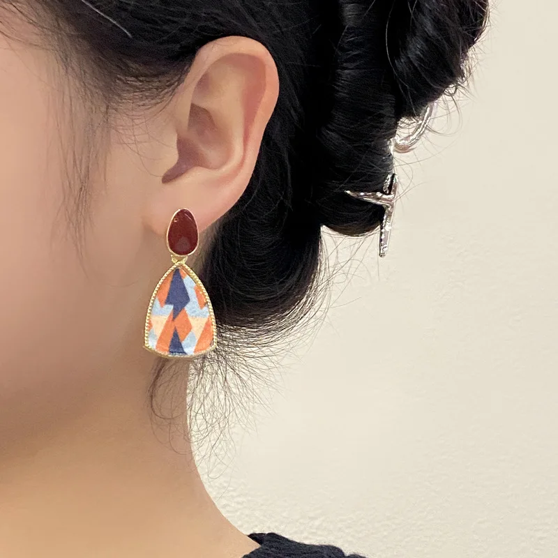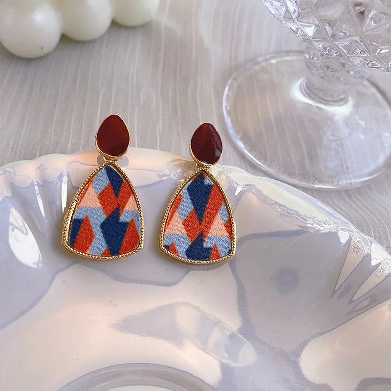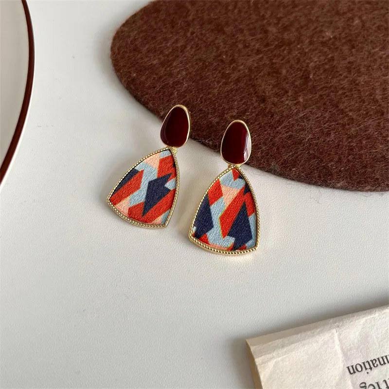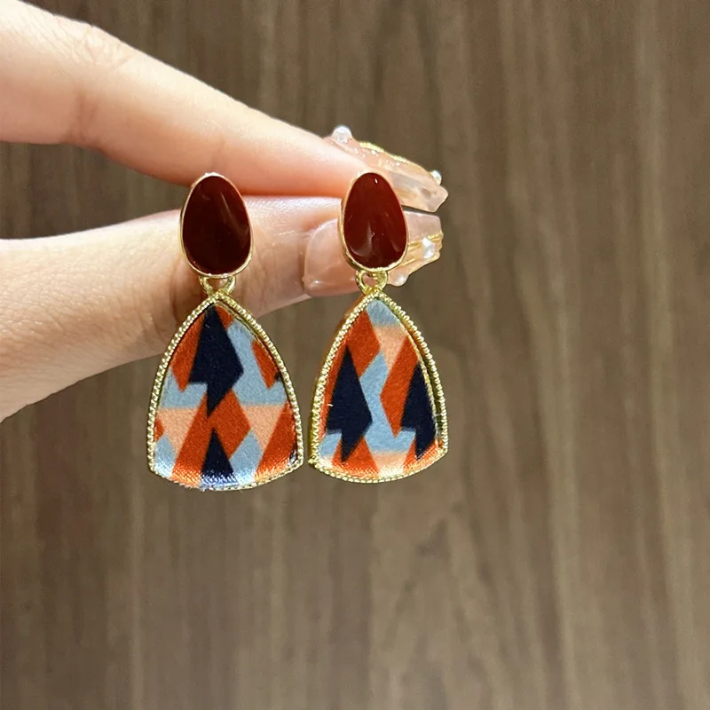 Burgundy Waterdrop Patchworks Cloth Drop Earrings