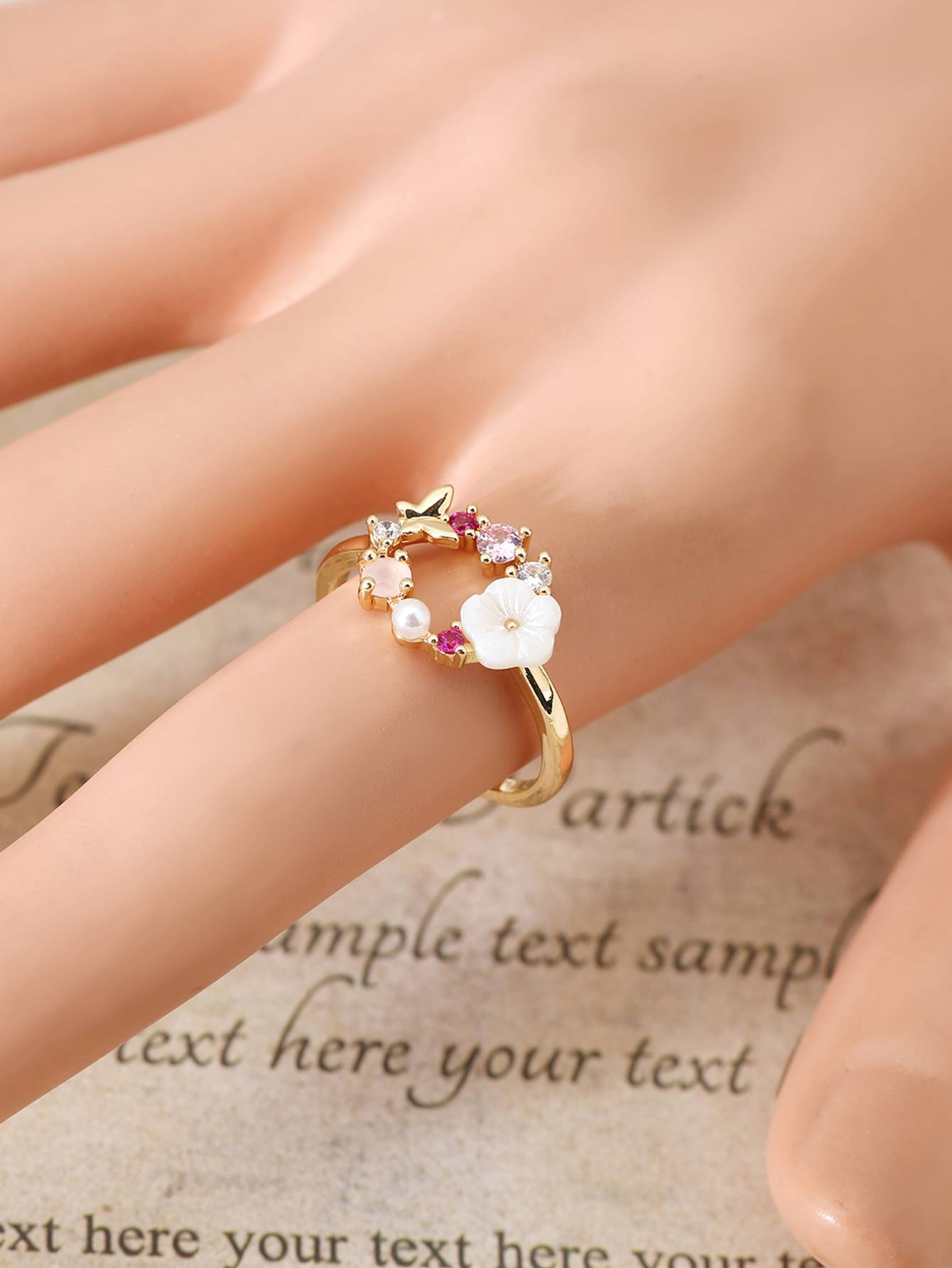The ring is happy with all 100%!! It's love! Took 6 size on the ring finger came perfectly. Very neatly made, cute, just for the spring) absolutely does not look like cheap jewelry, for such money .. Be sure to order more!! Came the parcel for 3 weeks in the Czech Republic. It was packed firmly! Seller recommend)