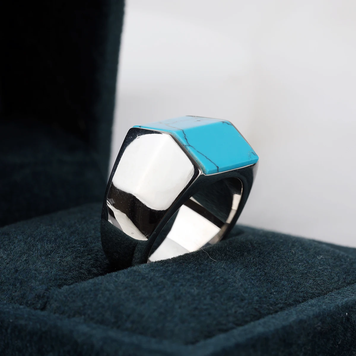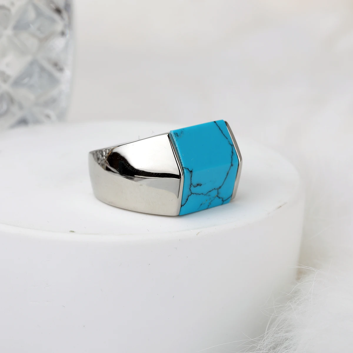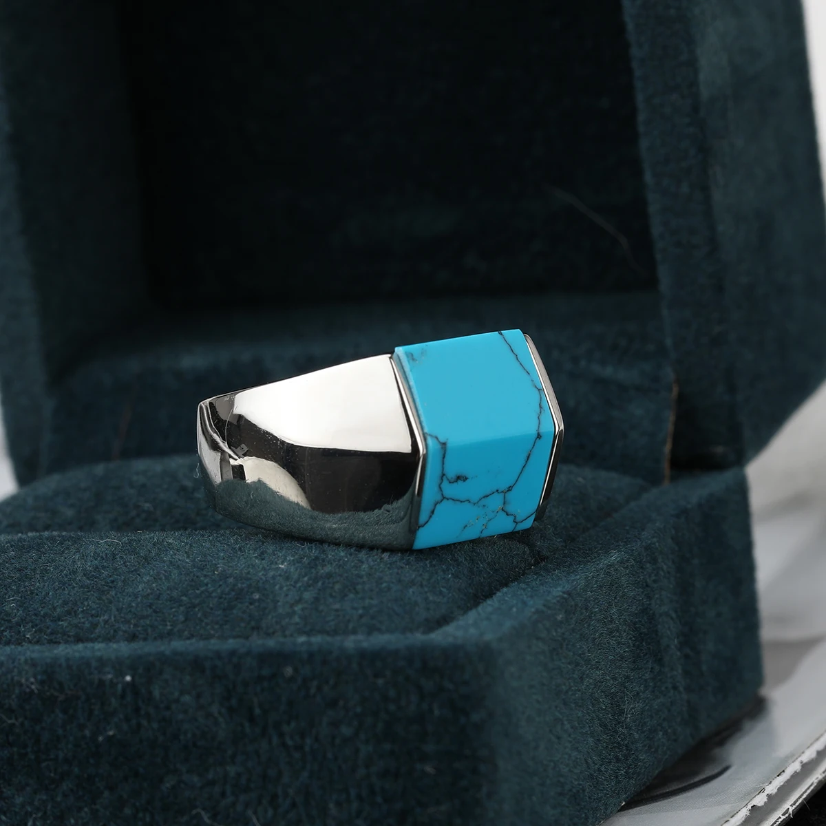 Butterfly's Wings V Roof-Shaped Natural Turquoise Stone Ring Men Jewelry New Arrivals Rings