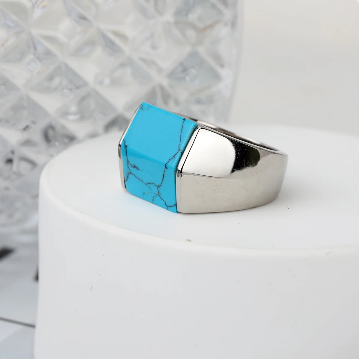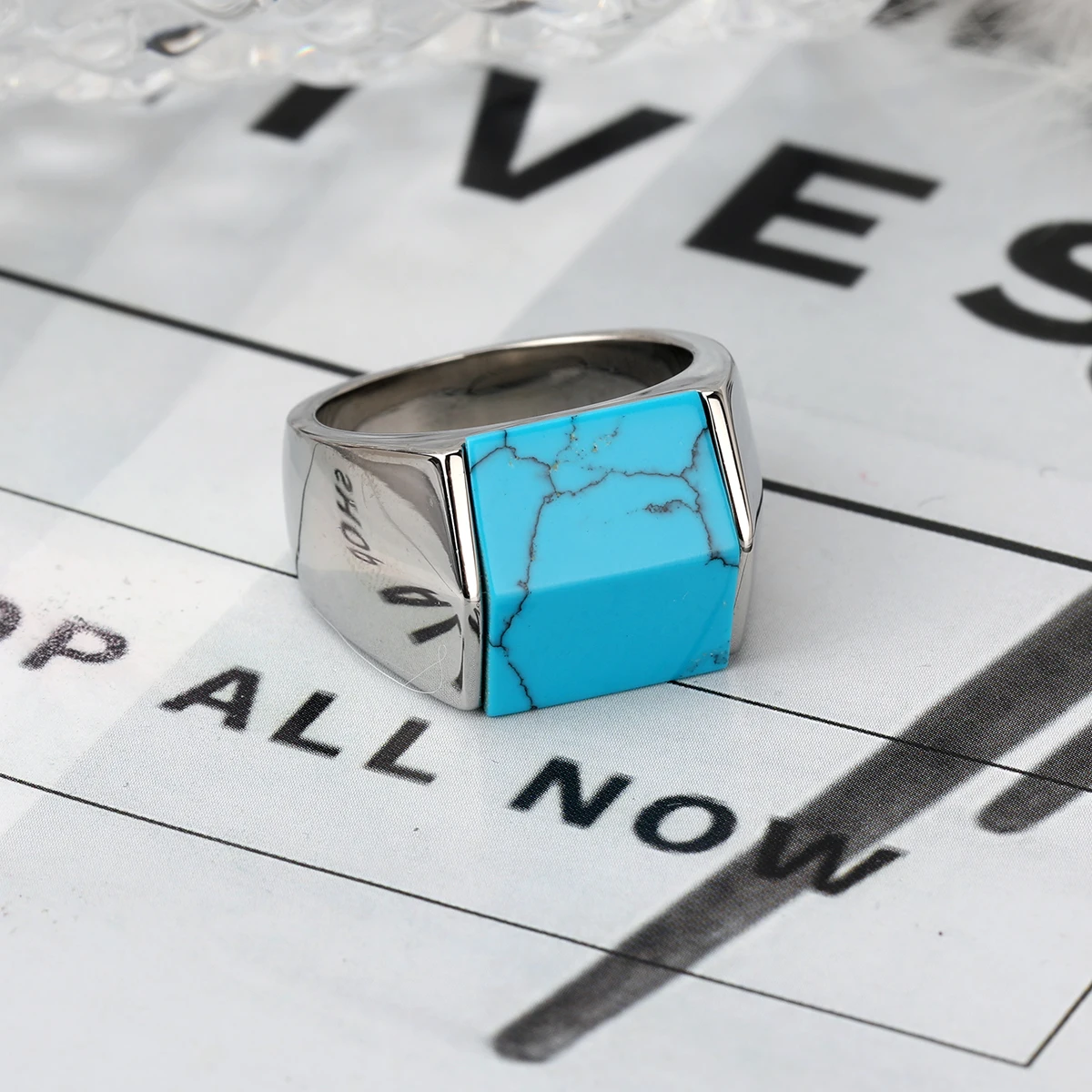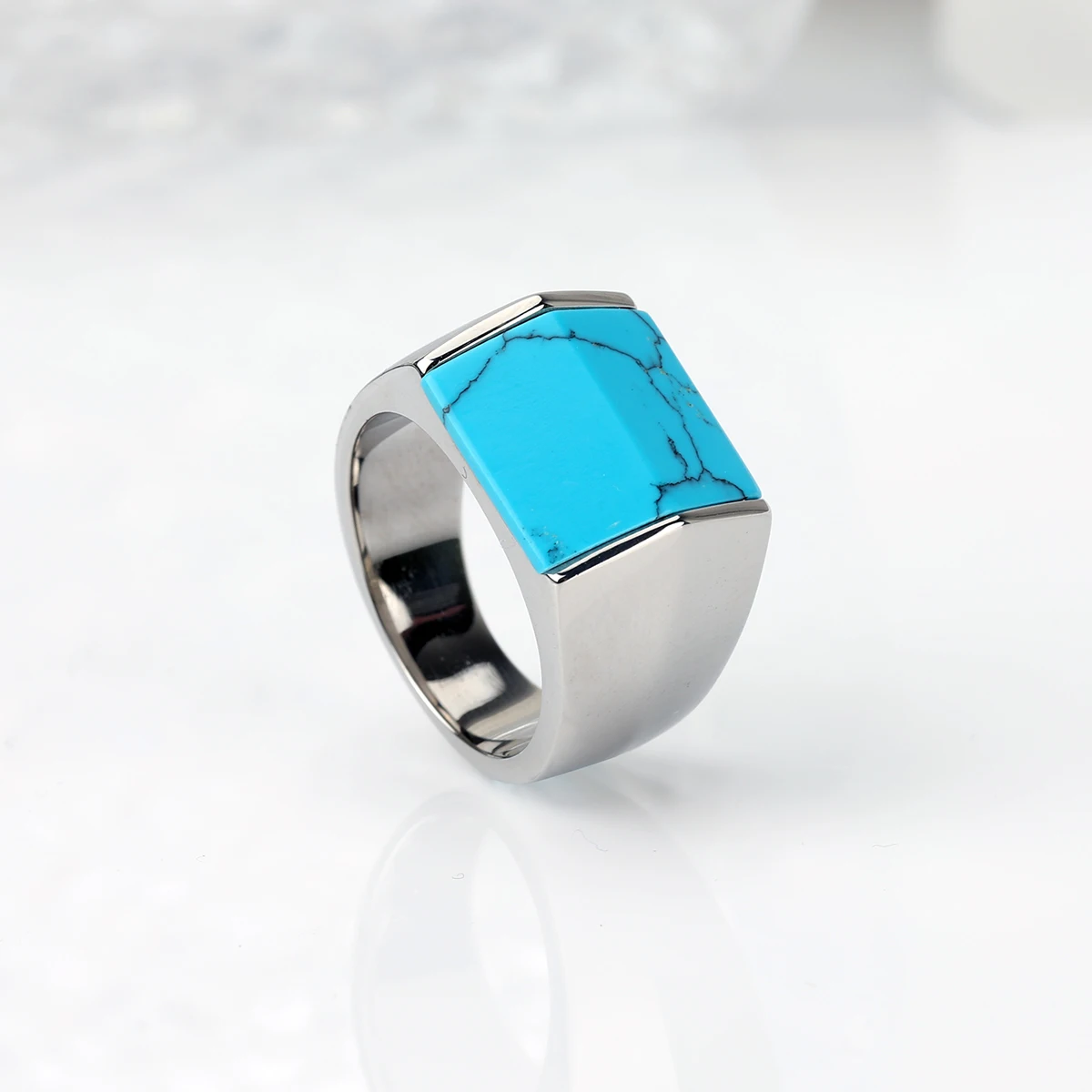 Butterfly's Wings V Roof-Shaped Natural Turquoise Stone Ring Men Jewelry New Arrivals Rings