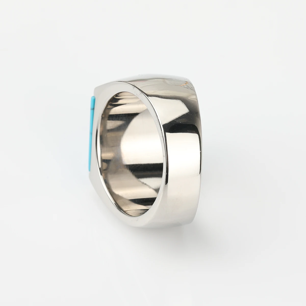 Details: Butterfly’s wings or V roof-shaped natural turquoise stone tension set on a stainless steel ring. Turquoise is known to be a calming ornament stone that can induce internal serenity and lift depleted spirits.