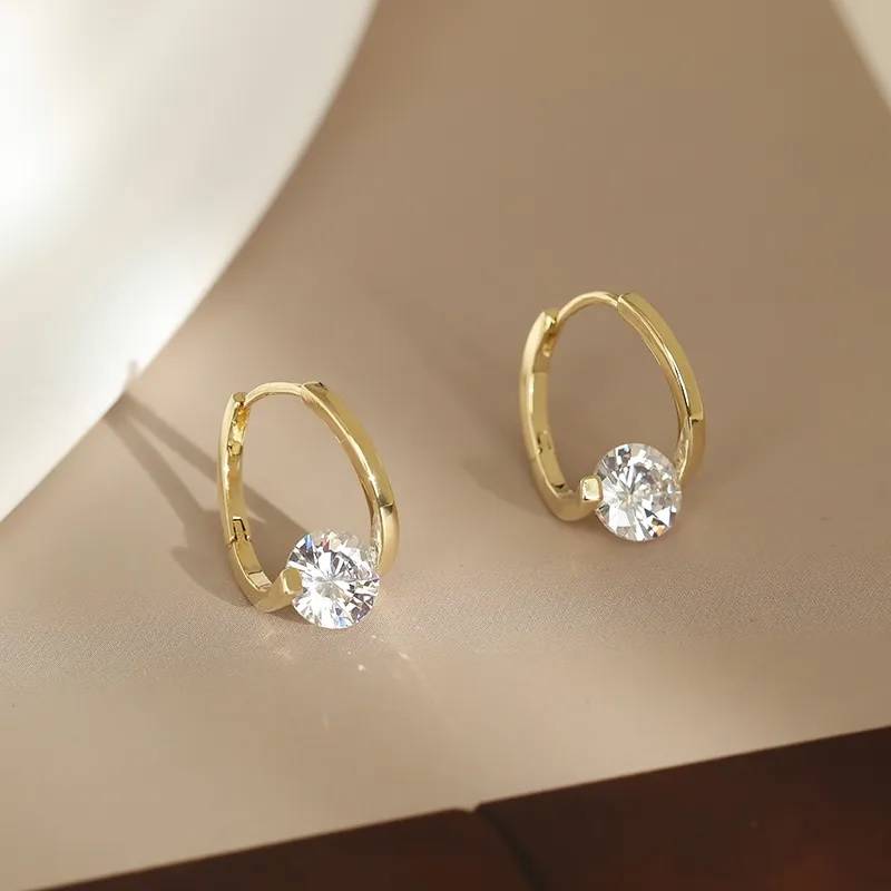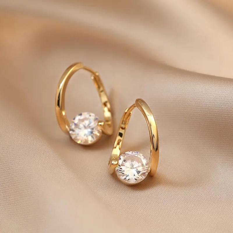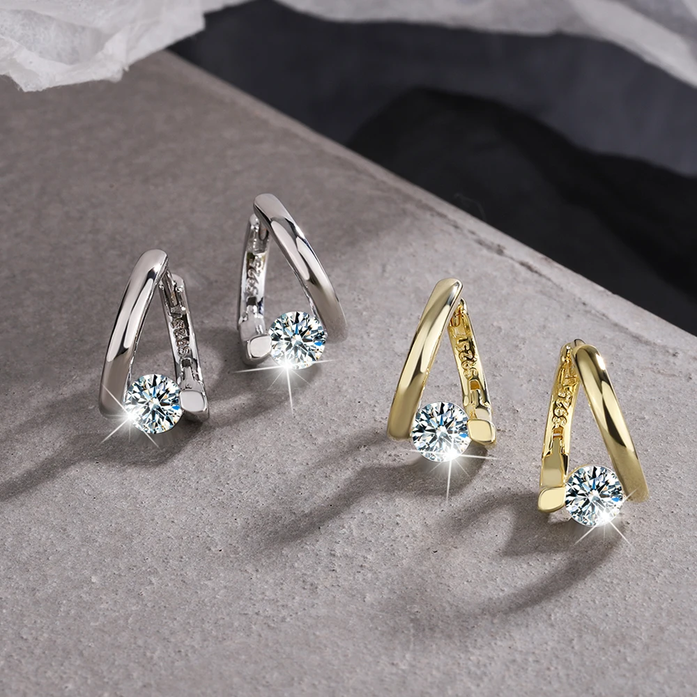 Silver Zircon Crystal Gold Stud Earring Earrings Women Jewelry