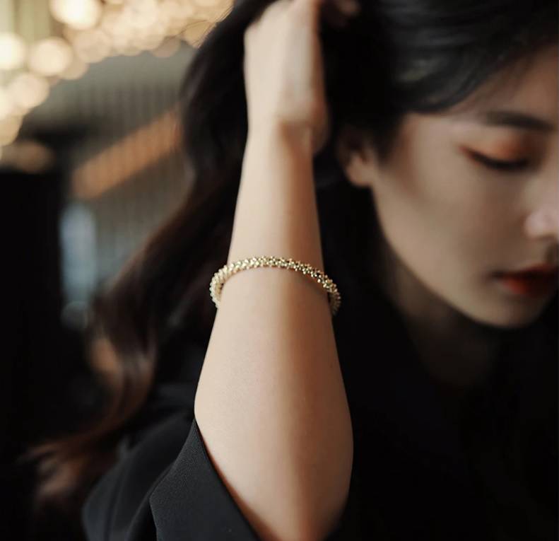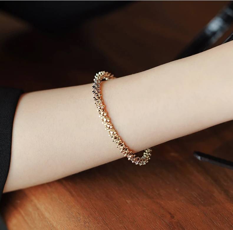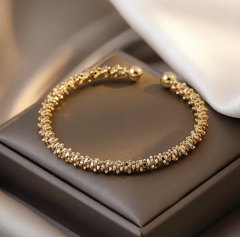 Very beautiful bracelet, everything is as picture. Gold color is noble. Very fast delivery.
