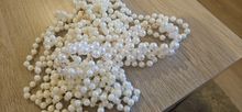 Beautiful. Plastic pearls, not very heavy.
