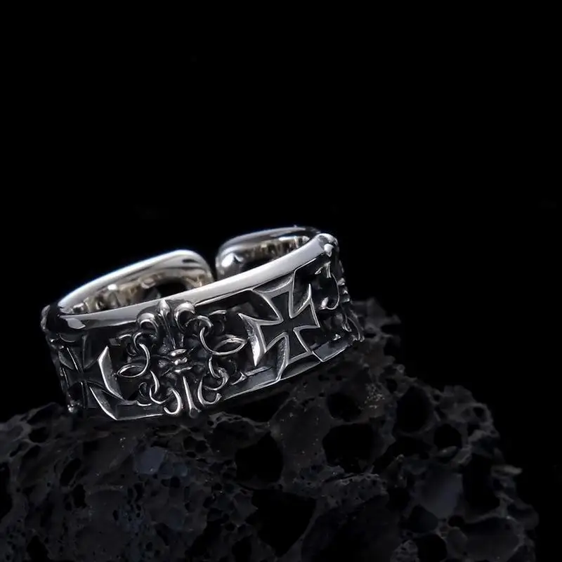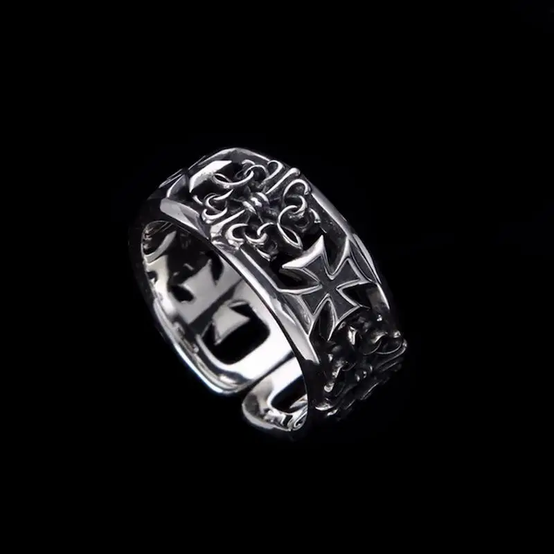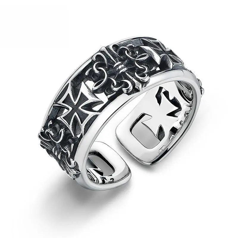 Crusader Cross Carved Open Cocktail Ring Men Jewelry New Arrivals Rings