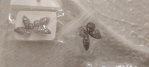 とどくまでに1.5かげつかかった。サイズをかえられるので、ゆびがほそくてもOK。サイズがおおきく、すこしビーズっぽいのでほんもののダイヤみたいではない。でもキラキラでかわいい。
