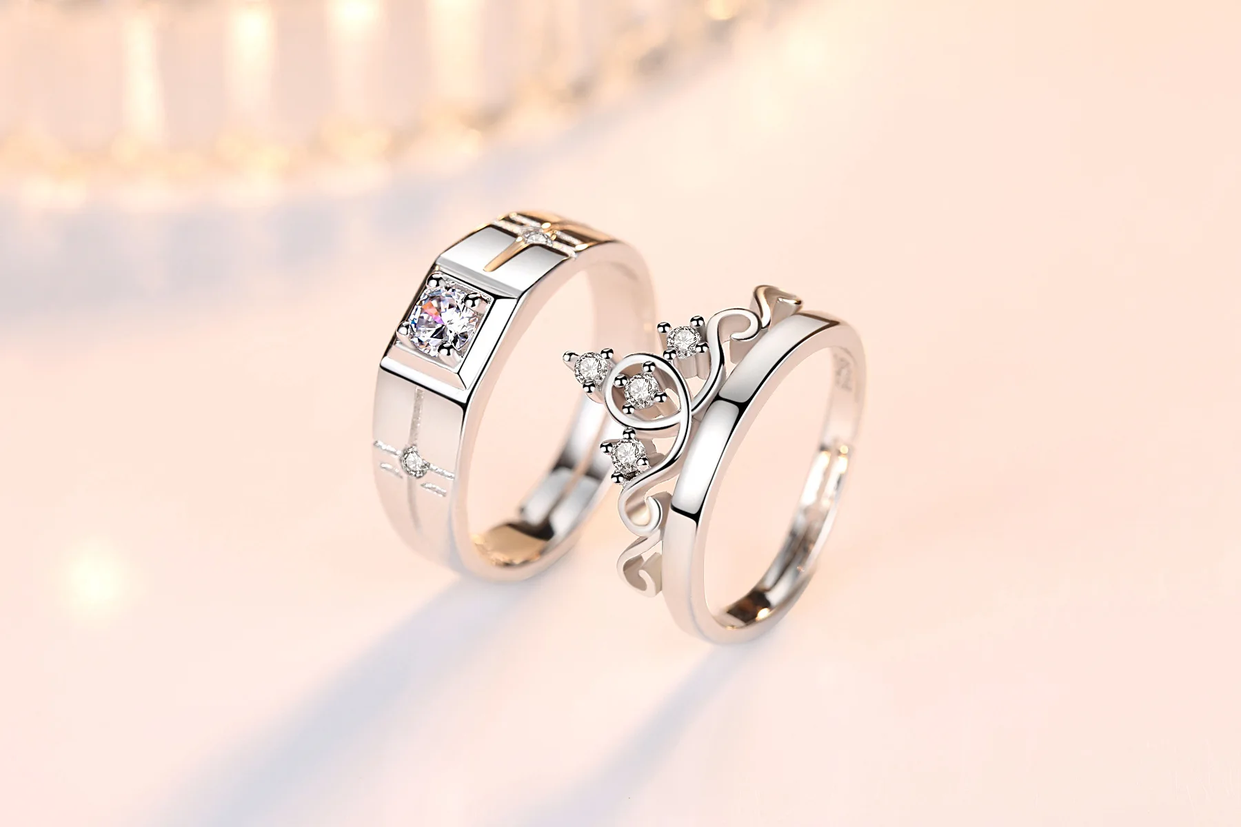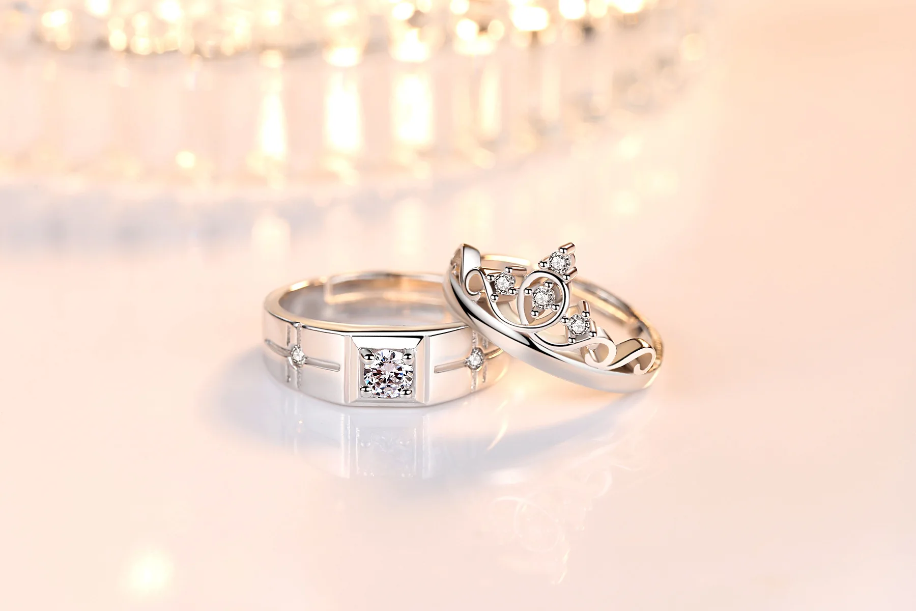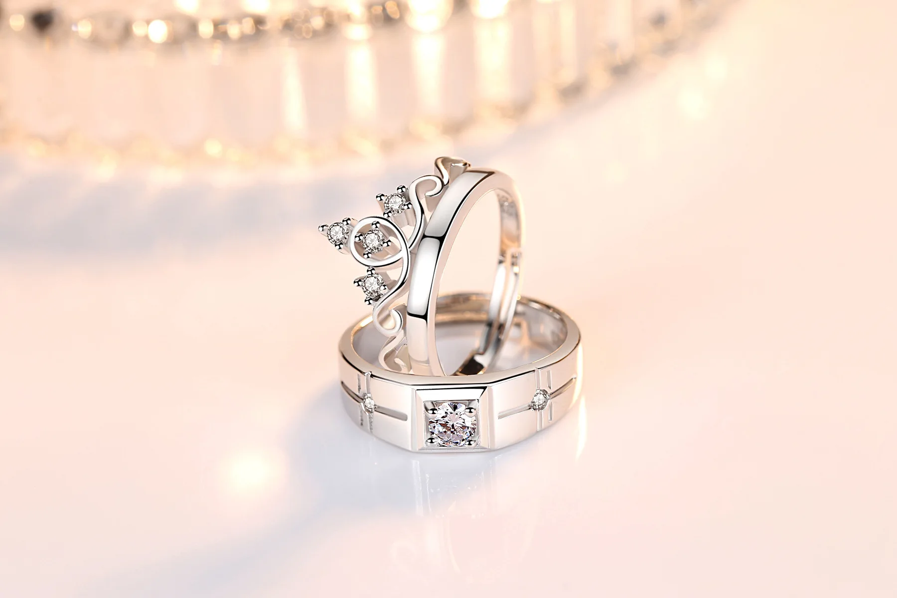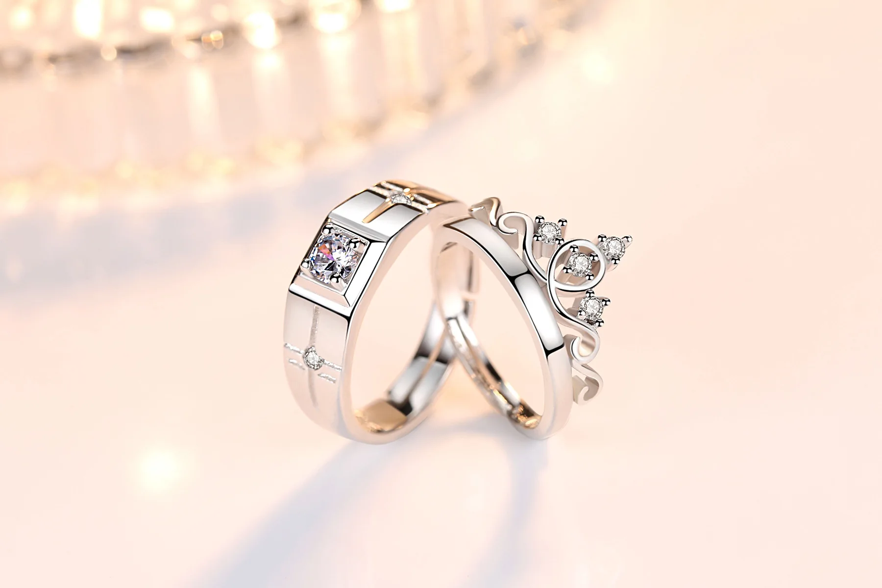 Details: These exquisite open rings symbolize the unbreakable bond between two hearts. Crafted with meticulous attention to detail, they capture the essence of love, commitment, and shared dreams. Each ring boasts a lustrous platinum-plated finish, radiating sophistication and luxury. The cool, silvery hue complements any skin tone, making it an ideal choice for couples who appreciate timeless elegance. At the heart of each ring lies a majestic cubic zirconia crown. The regal motif represents royalty, strength, and protection. The crown’s intricate detailing and faceted stones evoke the sparkle of genuine diamonds, creating a captivating effect. The open design signifies the couple’s journey — a path that intertwines yet allows room for growth. As you slip these rings onto your fingers, you’re reminded of the shared adventures, laughter, and quiet moments that define your love story. Both rings are thoughtfully designed to be adjustable. Whether you’re exchanging vows or celebrating an anniversary, these rings adapt to your finger size, ensuring a comfortable and secure fit. While these rings make enchanting wedding bands, they’re equally suited for anniversaries, engagements, or simply as a heartfelt gift. Wear them as a daily reminder of your commitment or save them for special occasions — the choice is yours.