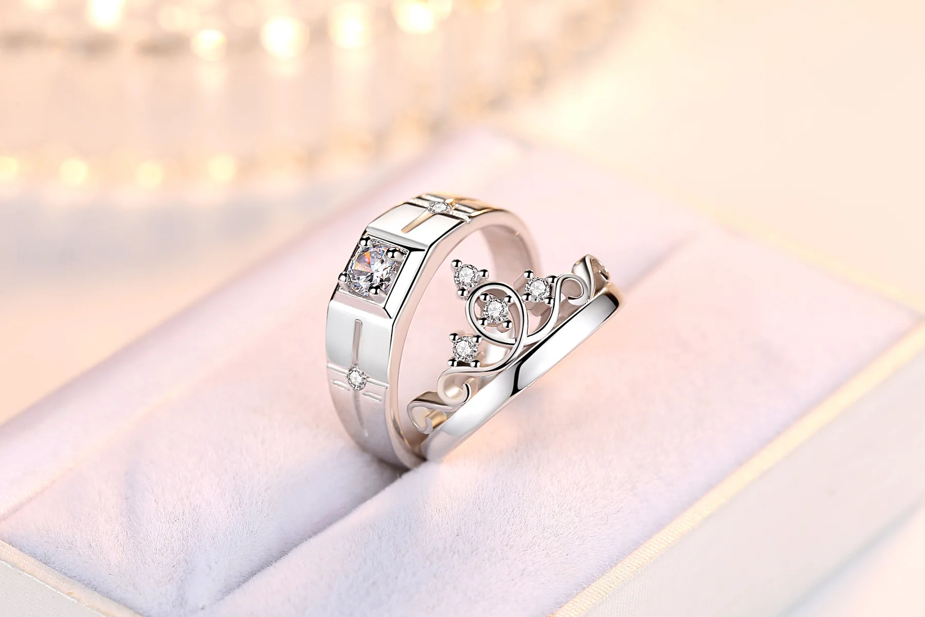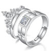 Cubic Zirconia Crown Platinum Plated Lovers Couple Wedding Open Rings