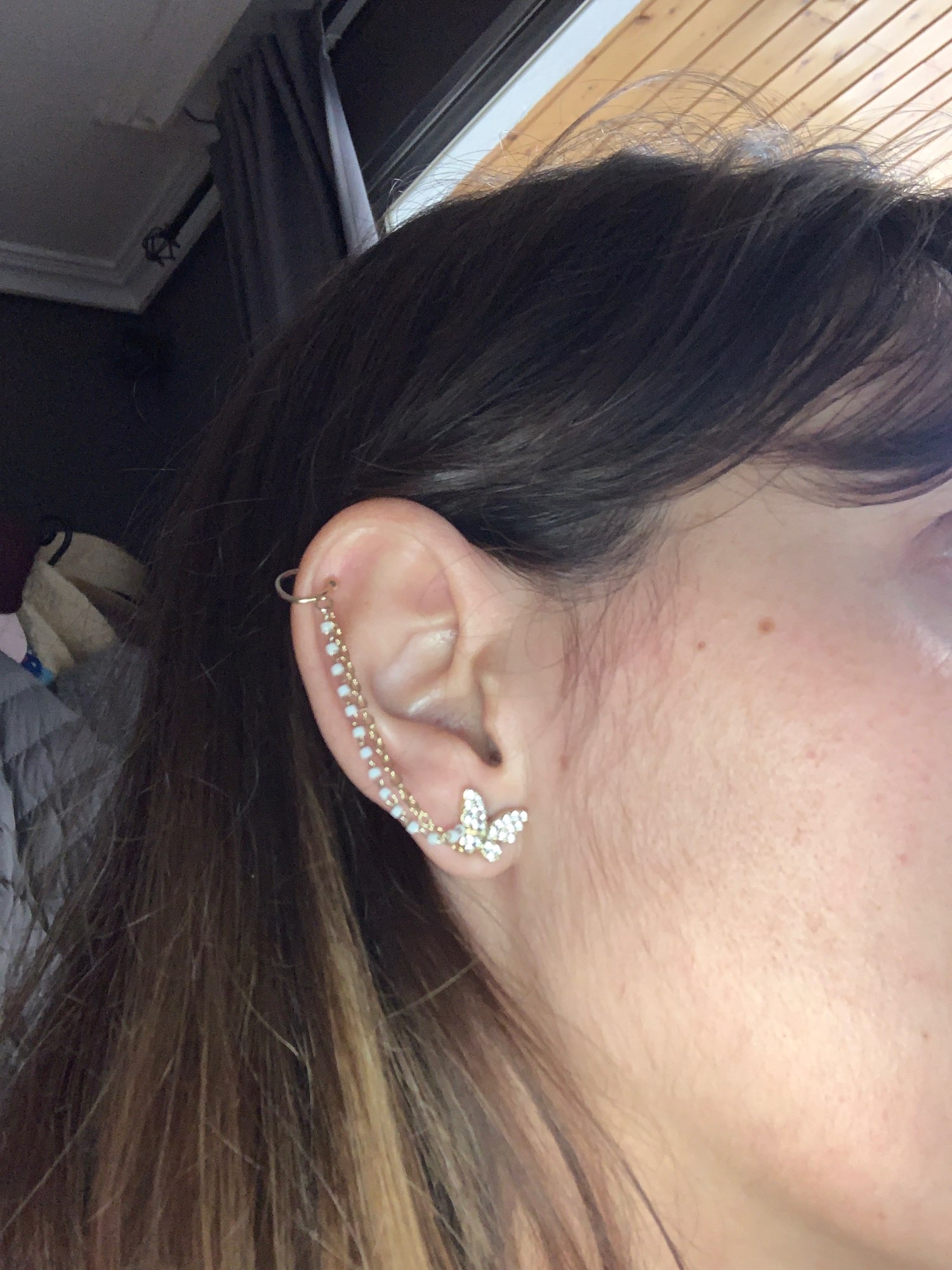 Very beautiful, but a little fragile, it's easy for the white bead chain to be safe, but it was easy to repair. It fits very well and doesn't feel like you're wearing it, arrived in perfect condition and well protected.