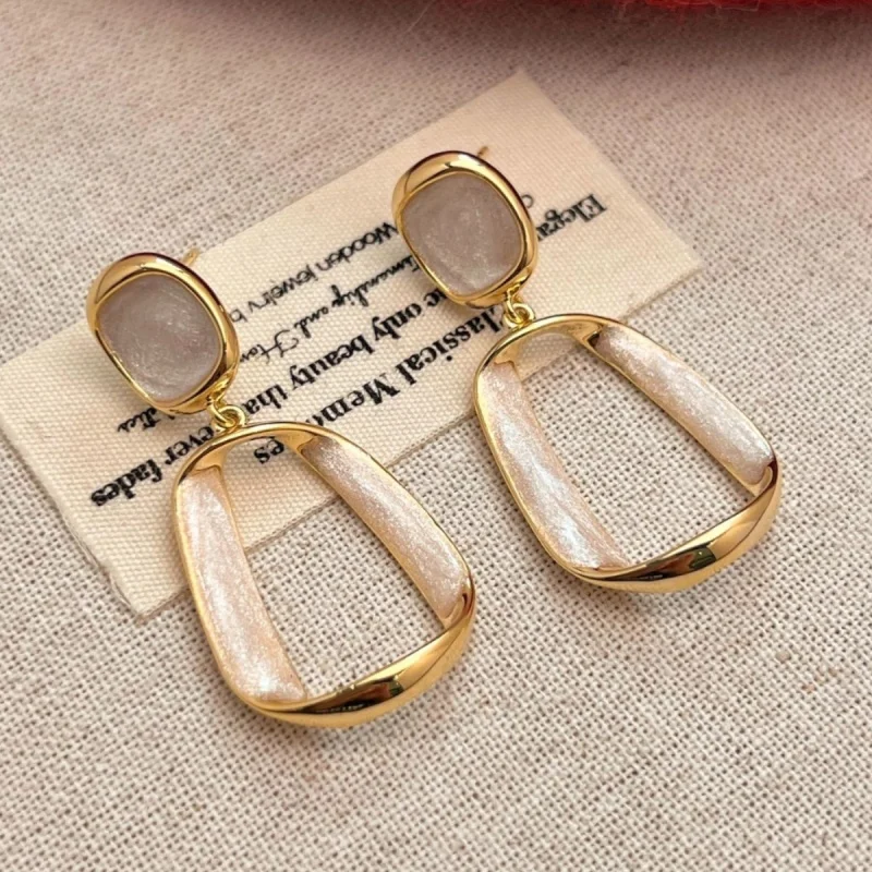 Details: These “Sculptural Whispers” earrings redefine elegance that plays with perception. The rectangular dangles feature gracefully curled and folded edges, creating a three-dimensional masterpiece. Crafted from lustrous metal, they catch the light with every sway. The folded edges create an illusion of movement, while the rectangular design remains timeless. The oval loops connect them to the earring hooks, allowing movement that whispers sophistication. The rectangular dangles symbolize hidden beauty waiting to be discovered. The delicate links add grace, and the swaying motion draws attention.