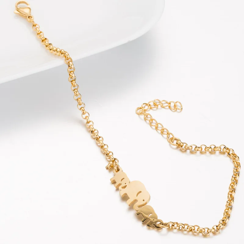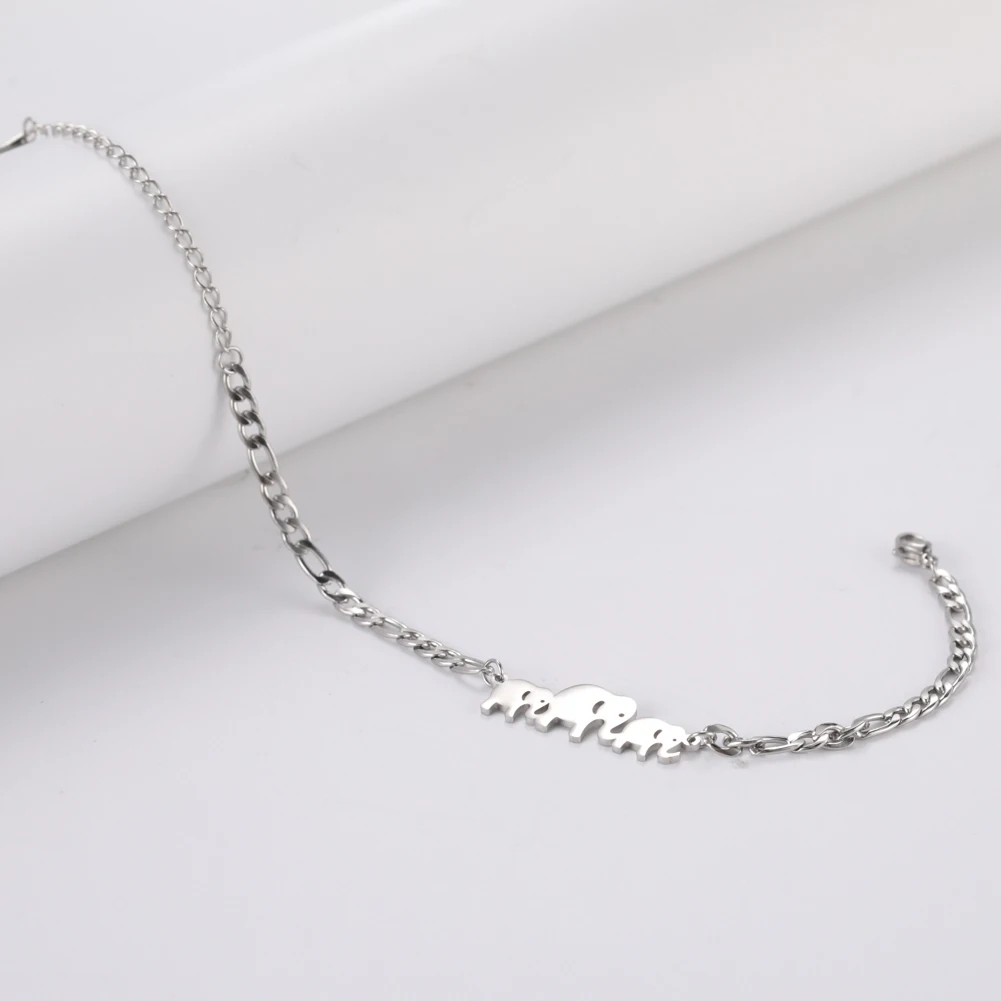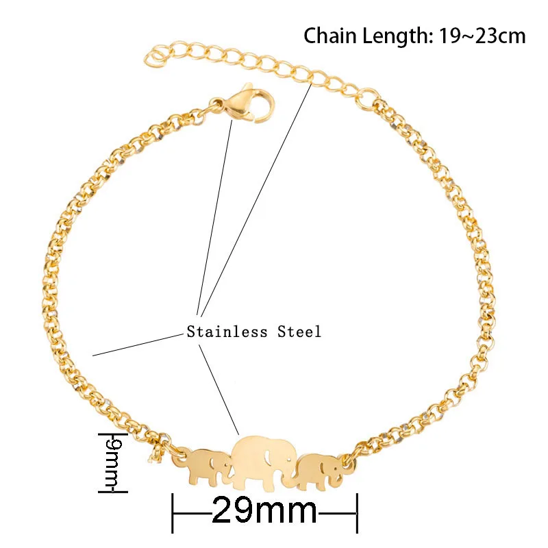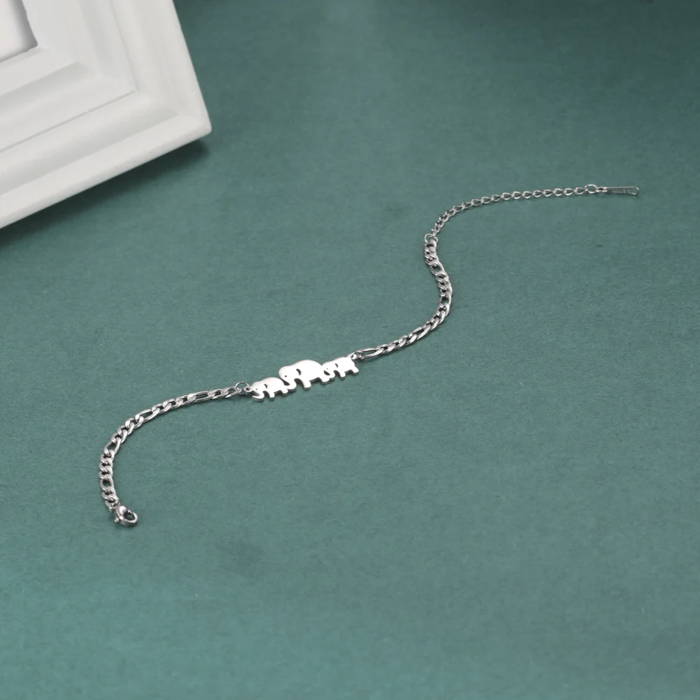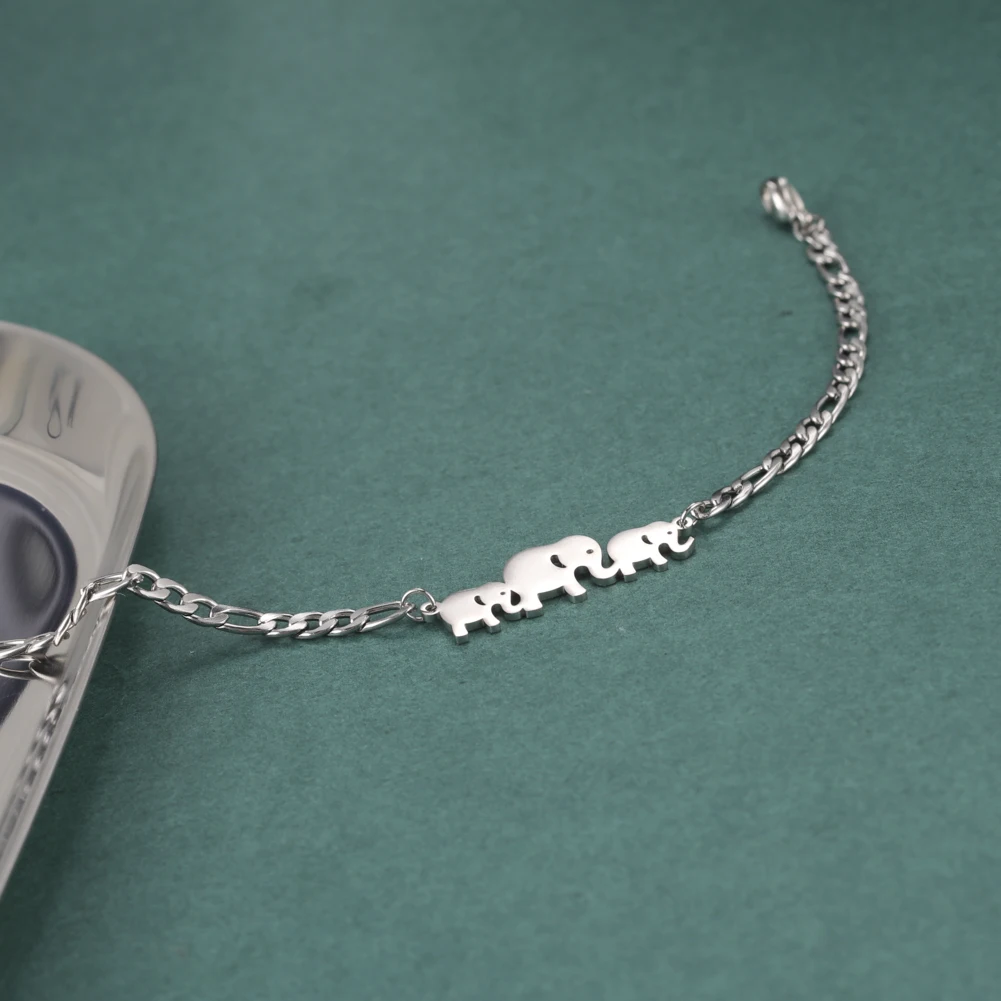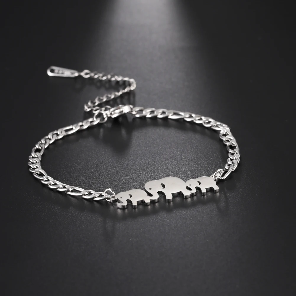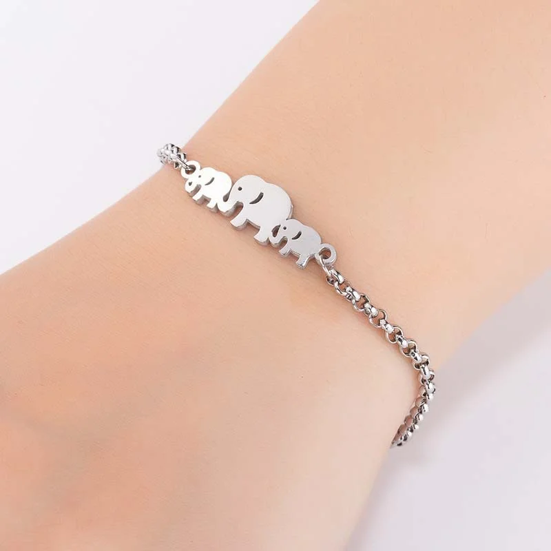 Cute Elephant Family Stainless Steel Link Chain Bracelet