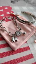 The bracelet is beautiful! Also received a black hood to keep and a flannel buff.