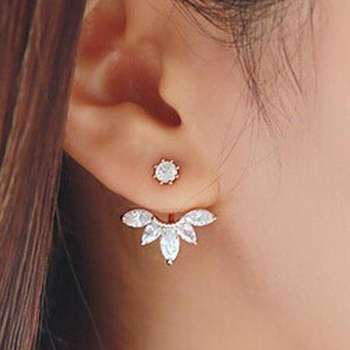 Horse Eye Leaf Leaves Cubic Zirconia Stud Earrings