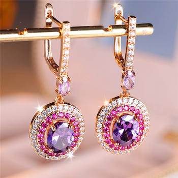 Purple Red White Oval Cubic Zirconia Hoop Earrings