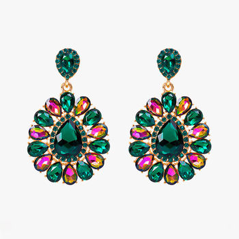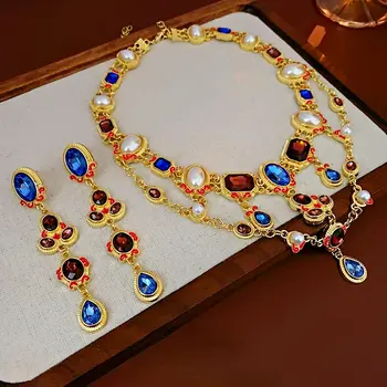 Colorful Rhinestone Faux Pearl Waterdrop Droplet Necklace Earrings