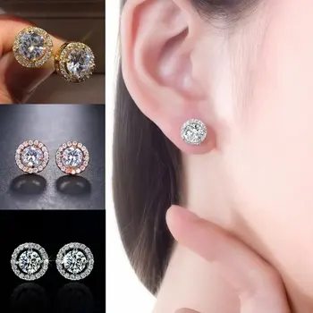 Exquisite Round Solitaire Cubic Zirconia Stud Earrings
