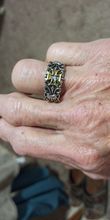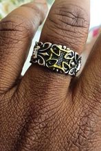 The ring is very beautiful. It is adjustable and I like that. fits well on the finger.