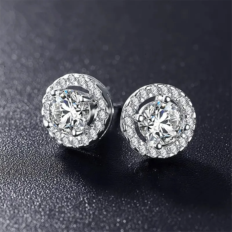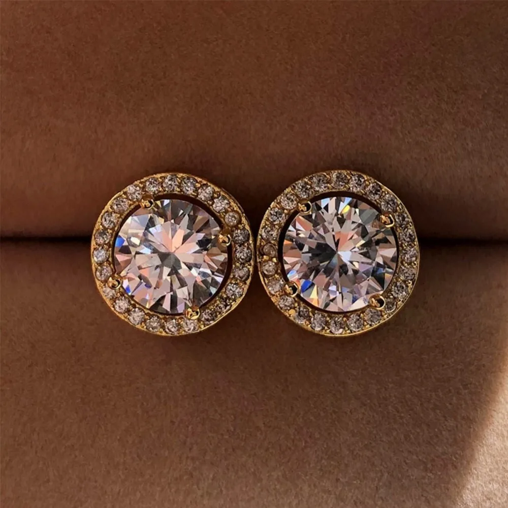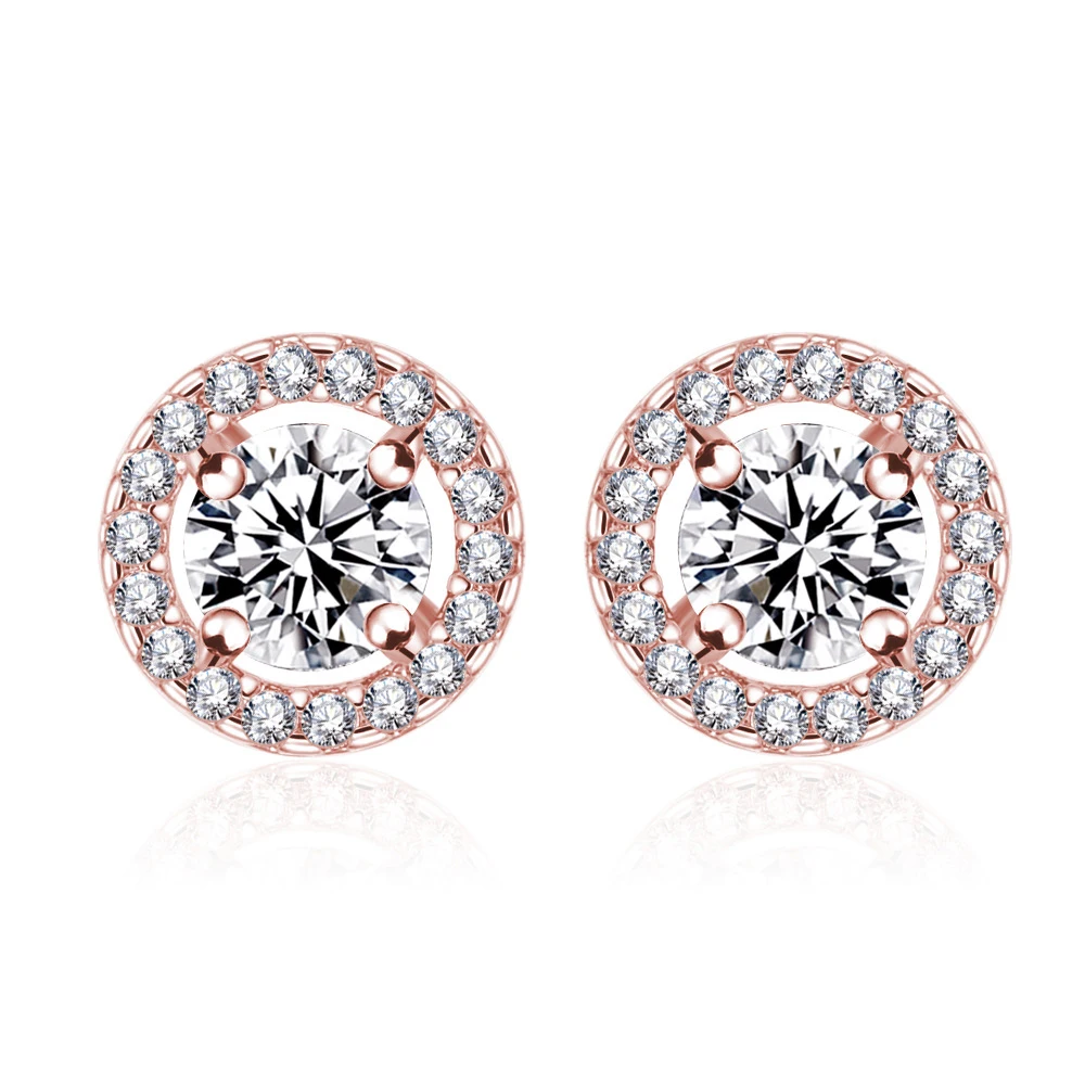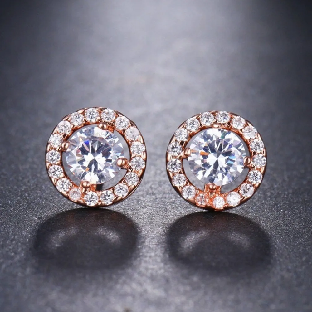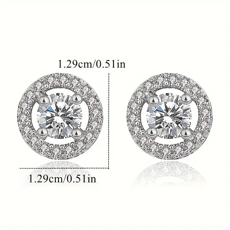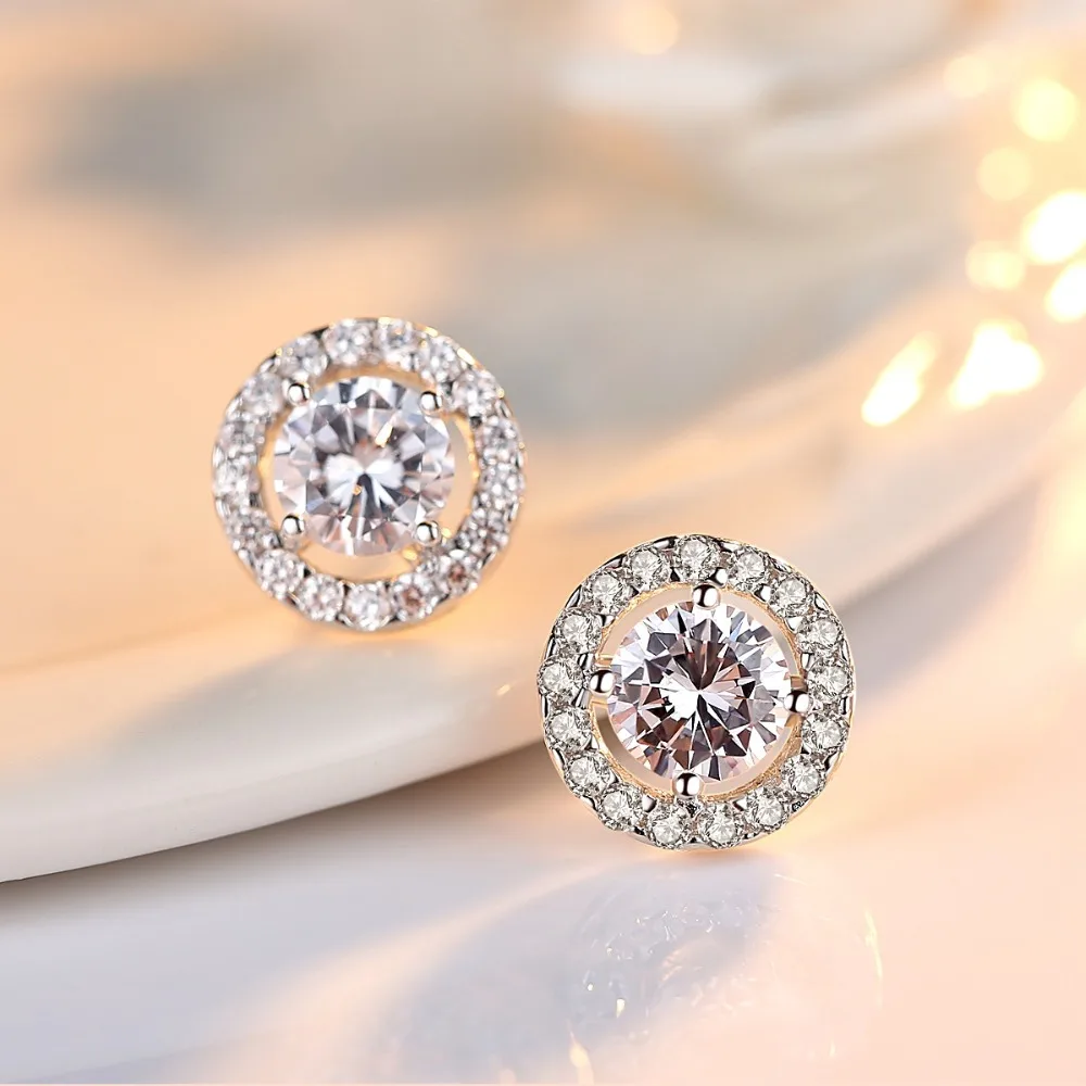 Exquisite Round Solitaire Cubic Zirconia Stud Earrings