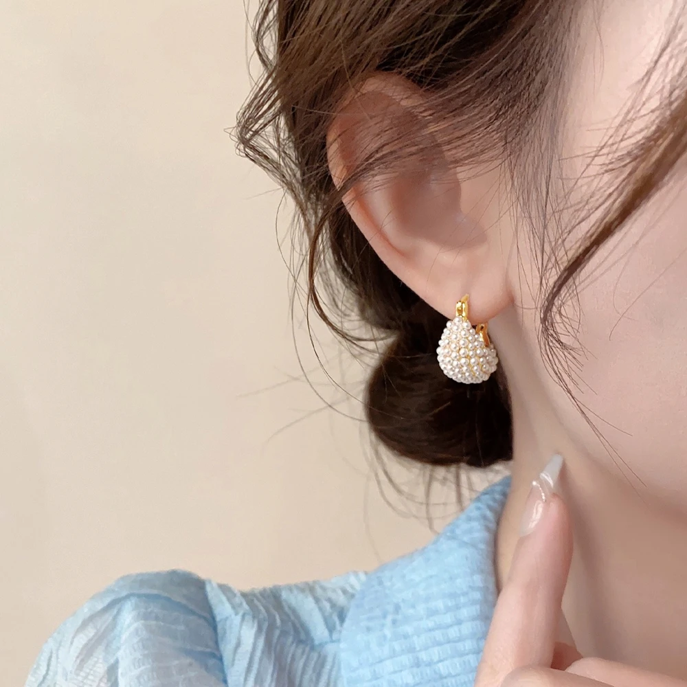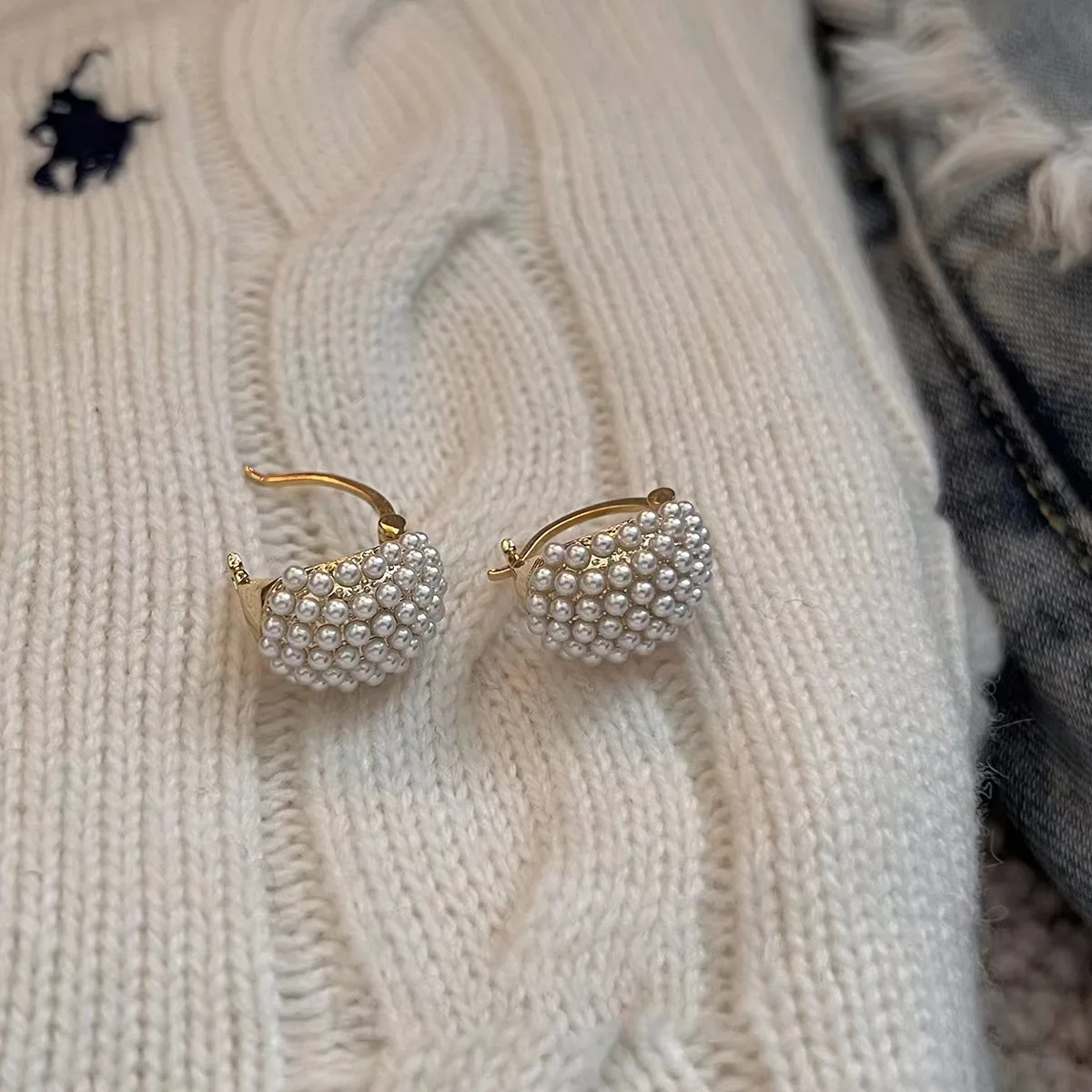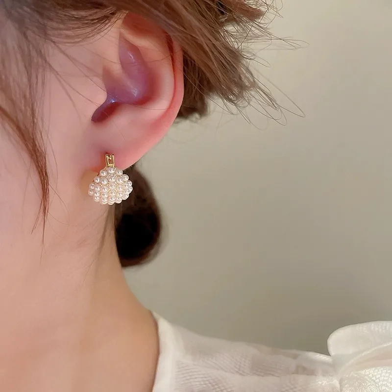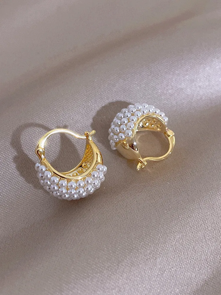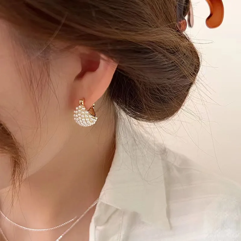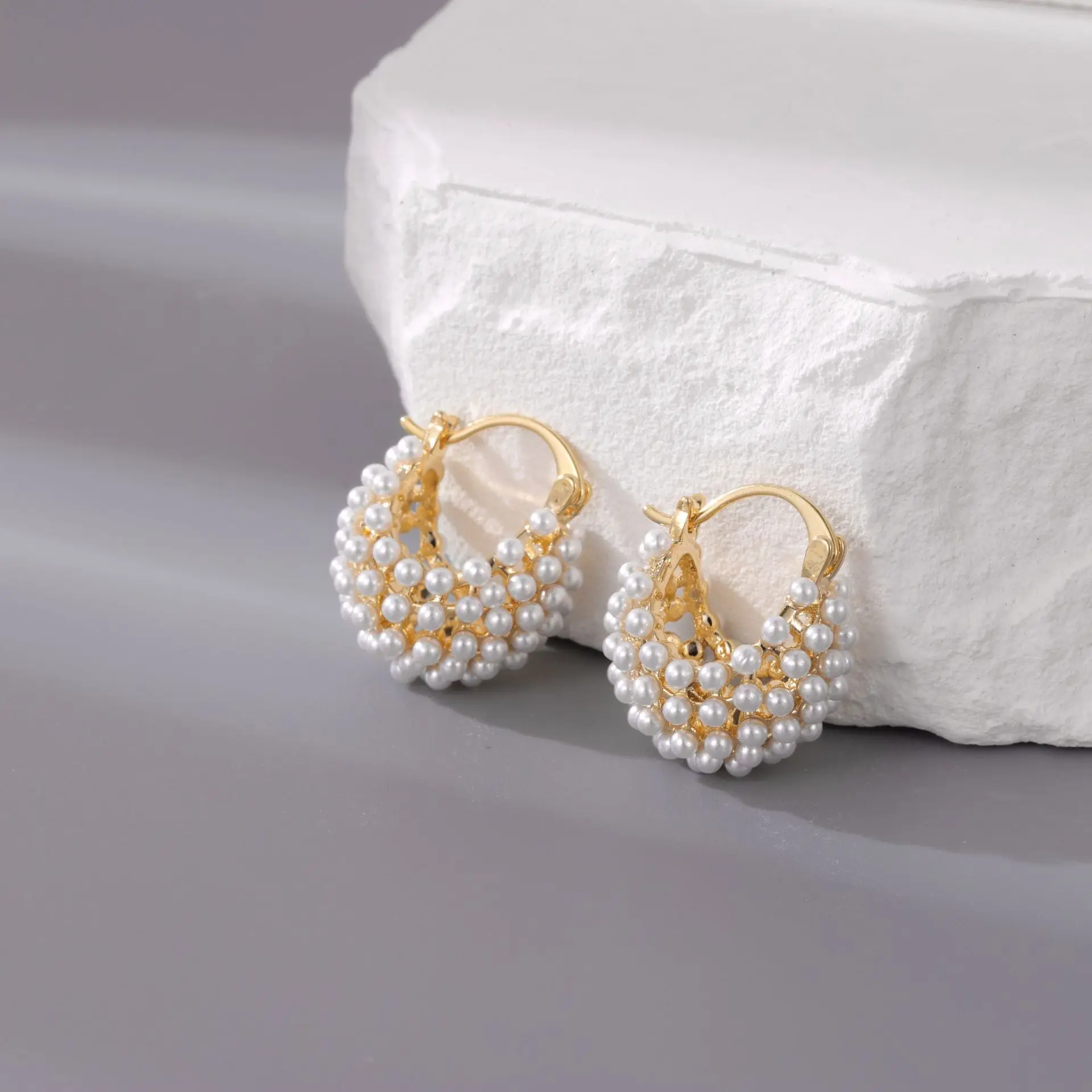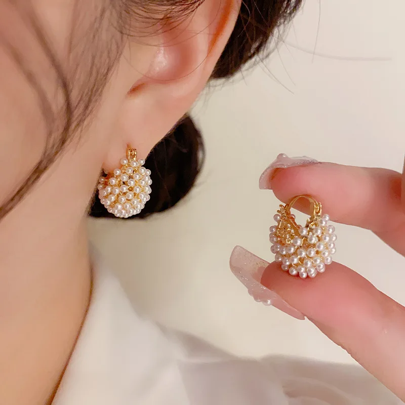 Faux Pearl Purse U-Shape Basket Drop Earrings