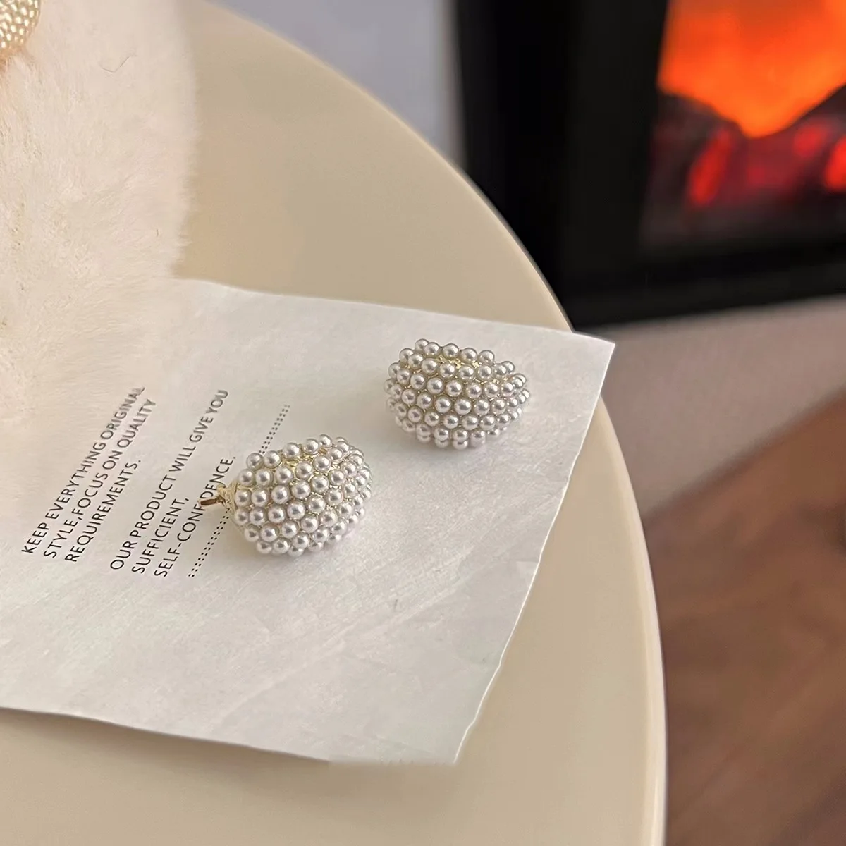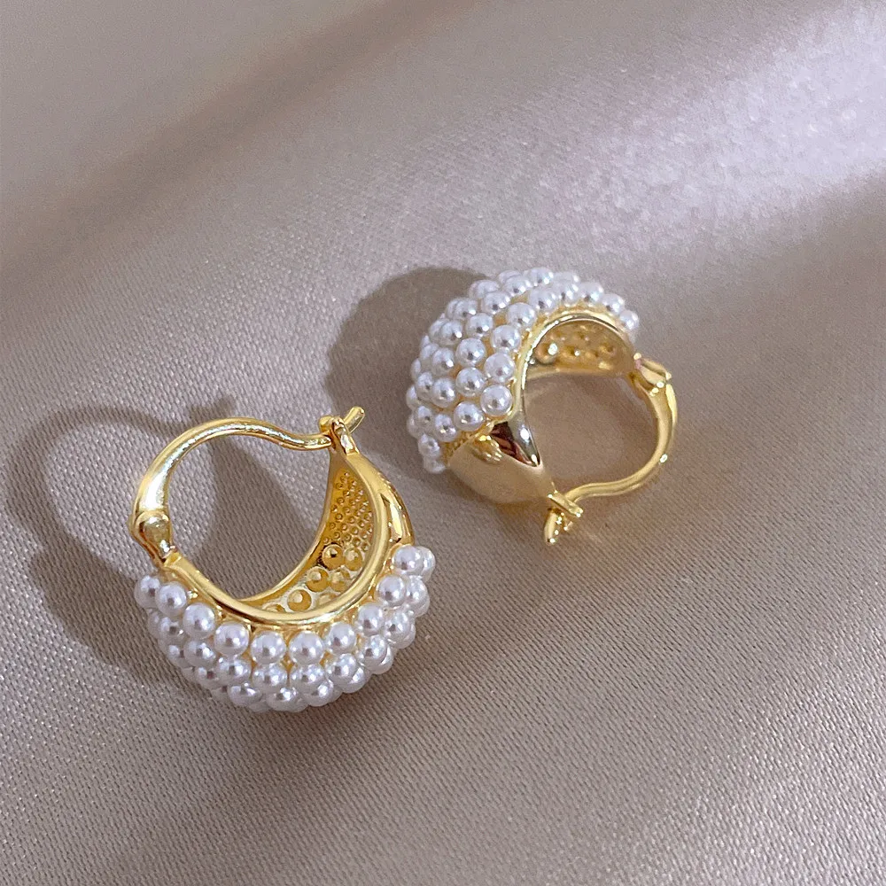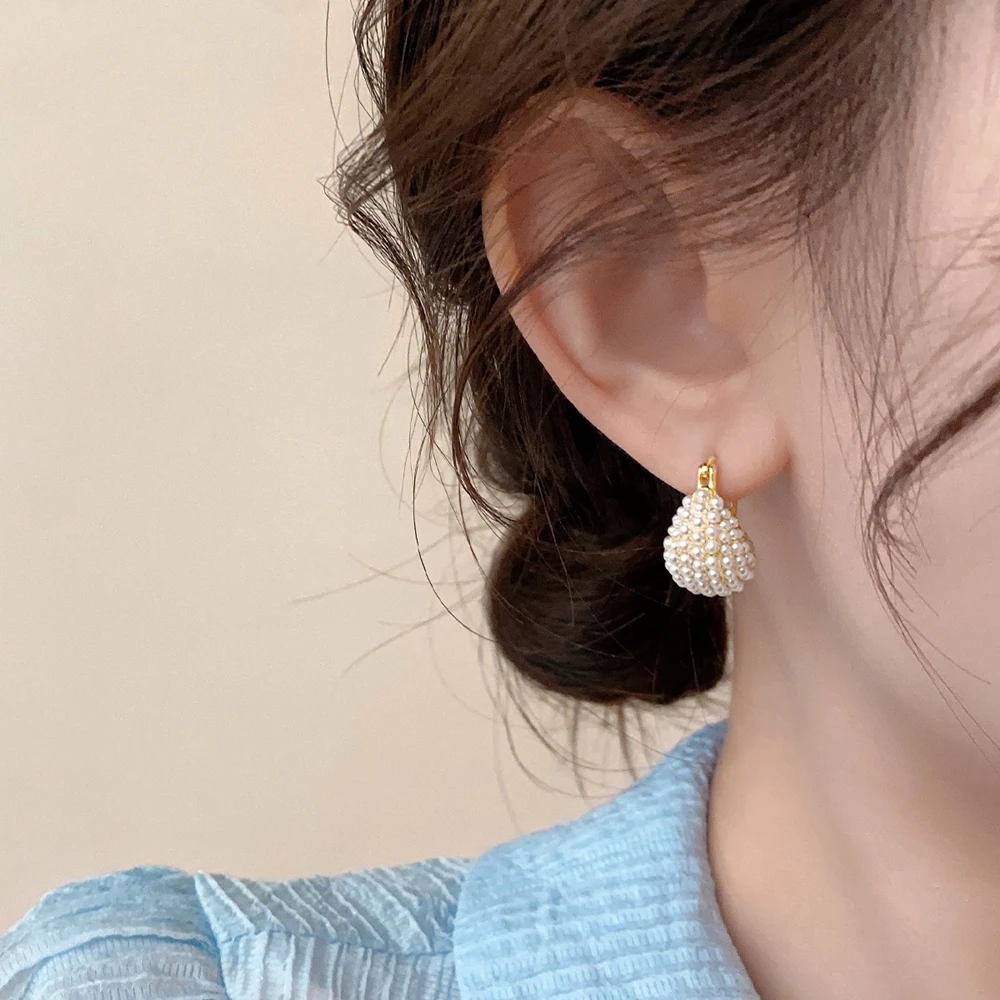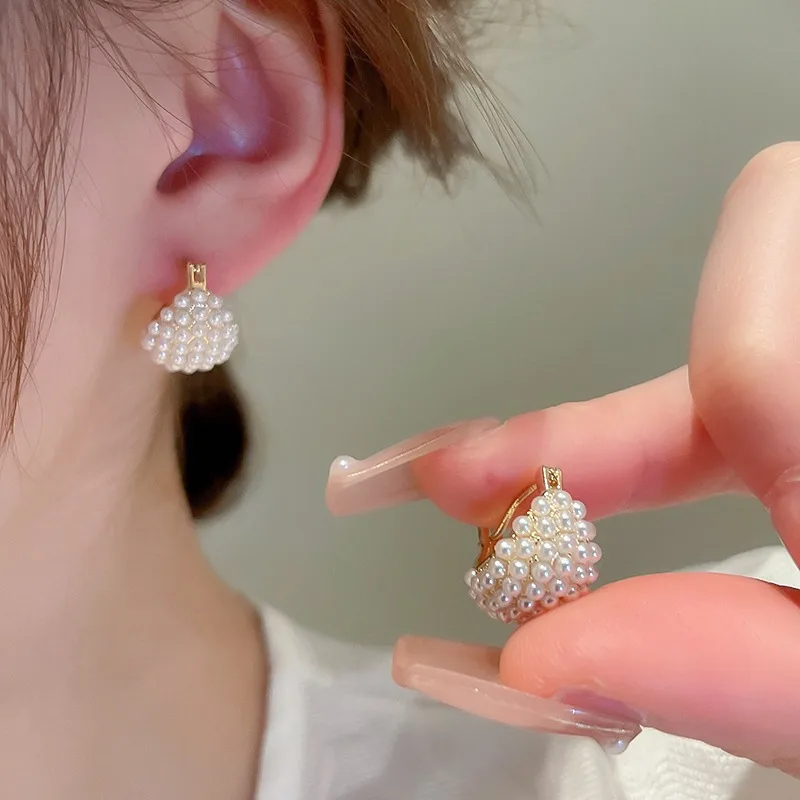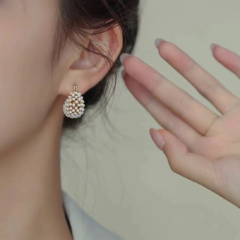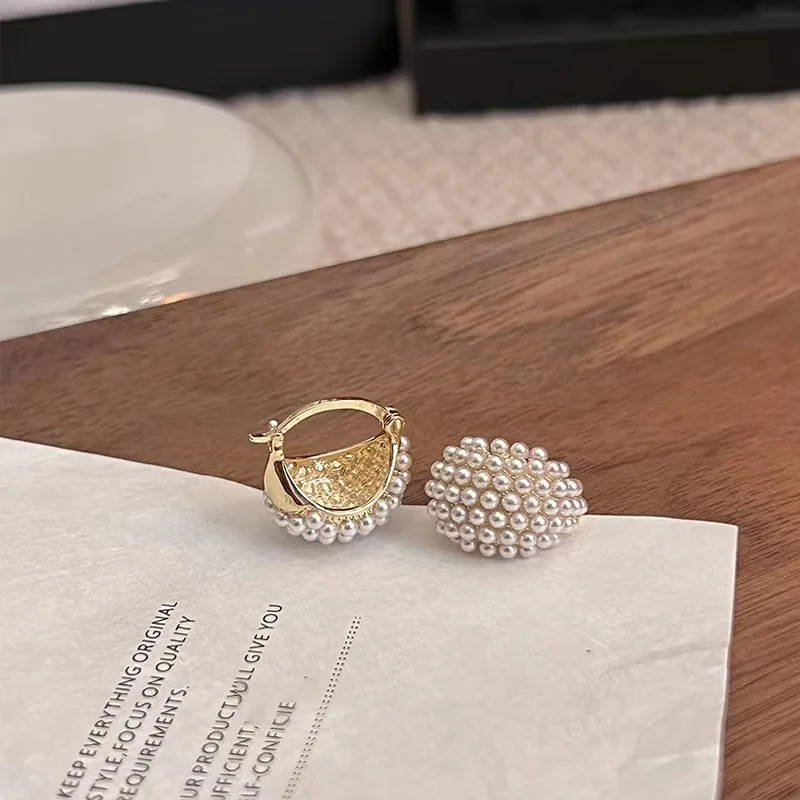 Faux Pearl Purse U-Shape Basket Drop Earrings