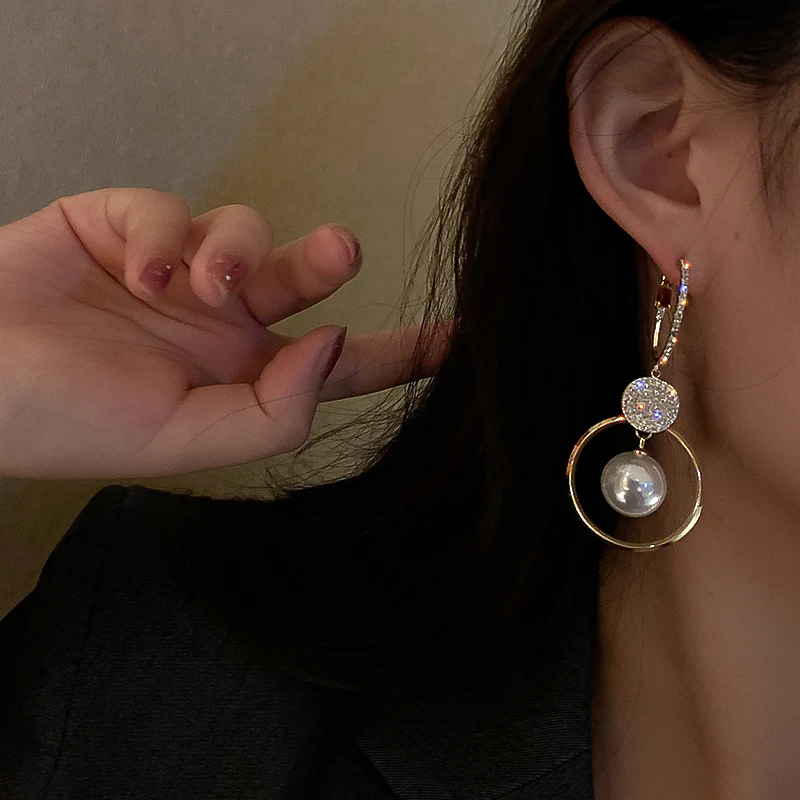 Details: Elegance meets sparkle in these round drop earrings. A lustrous faux pearl takes center stage, encircled by a gold-tone halo adorned with delicate rhinestones cascade down, catching light with every movement. The timeless pearl pairs seamlessly with the contemporary halo setting. A touch of sparkle adds sophistication to any outfit, perfect for both formal occasions and everyday wear. These earrings are both chic and captivating.