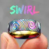 Fingerprint Swirl Spiral Engraved Stainless Steel Ring