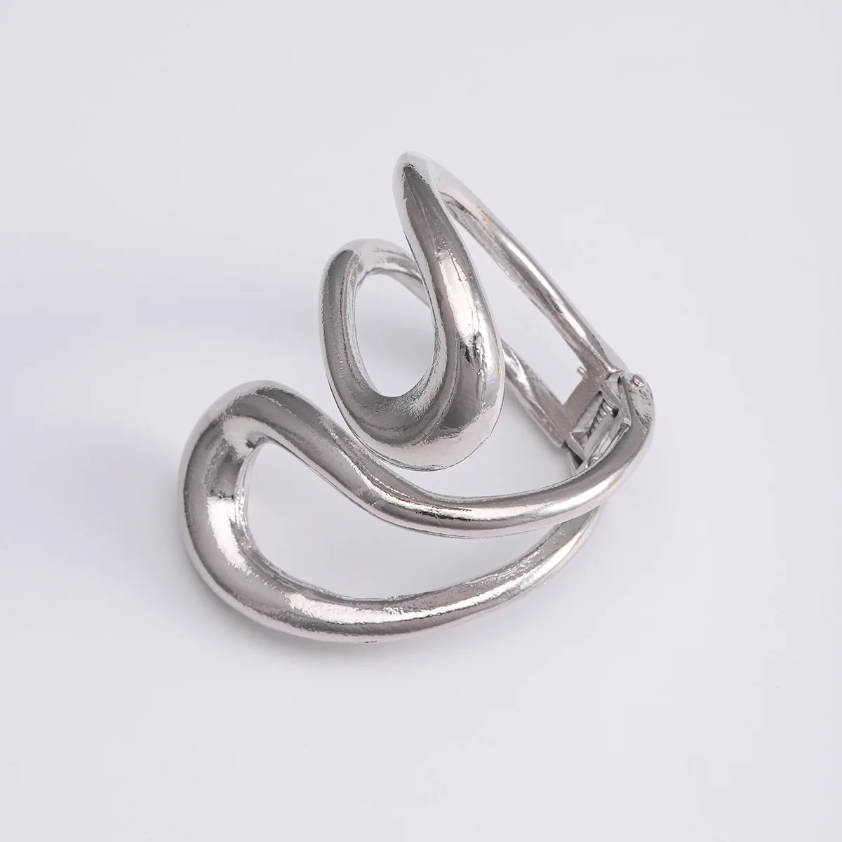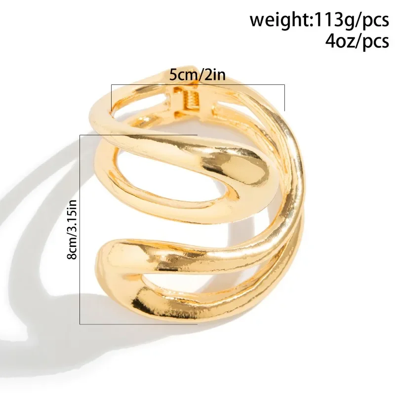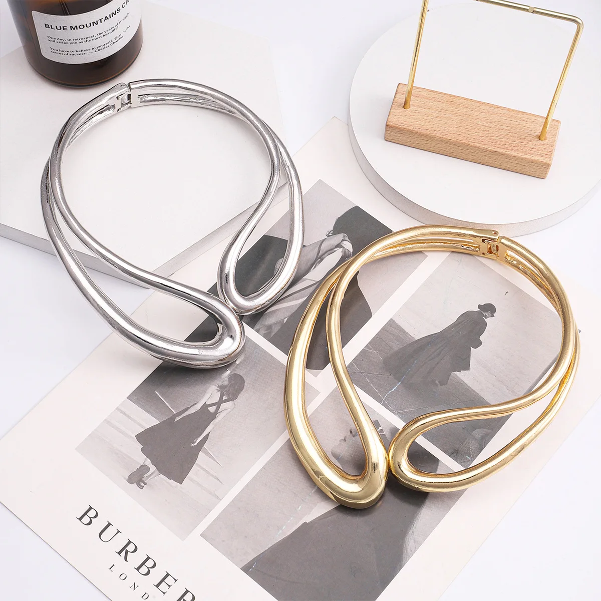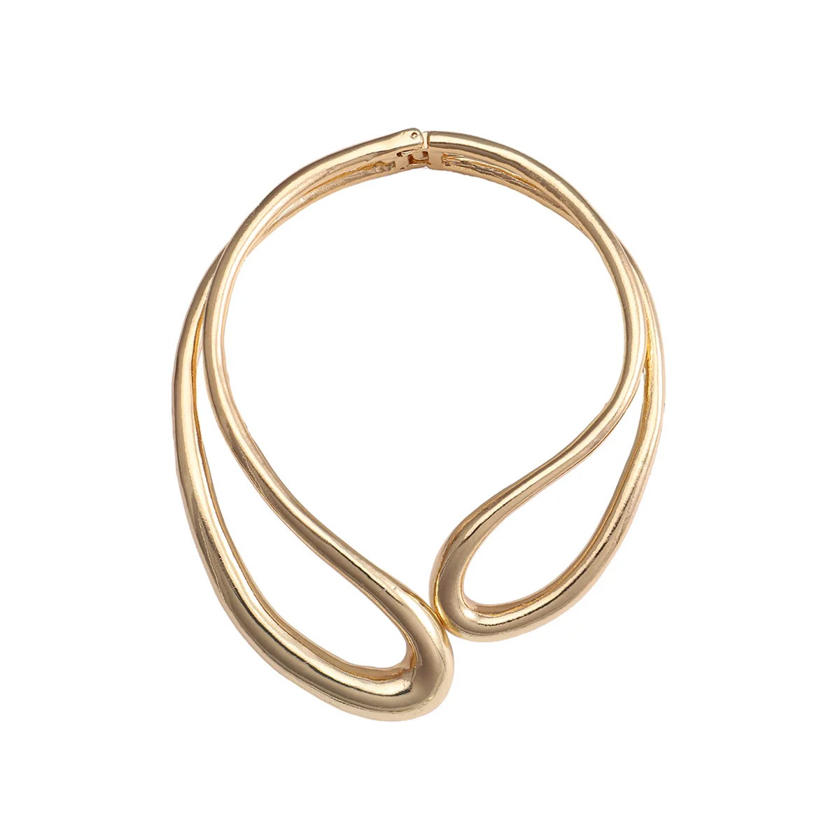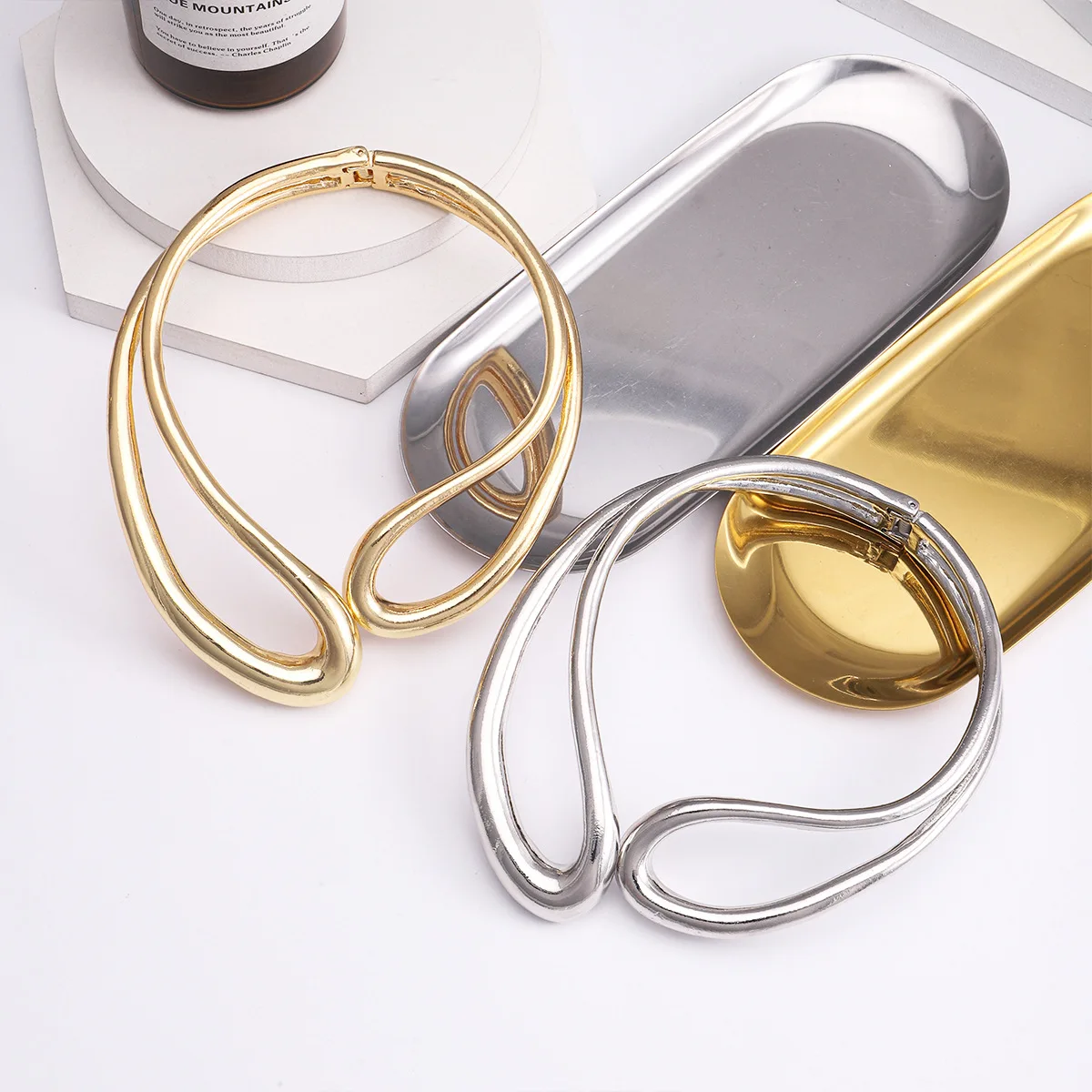 Details: Embrace the allure of modern elegance with this stunning gold or silver-tone bracelet. Its intricate geometric cutouts create a mesmerizing three-dimensional design that dances with light and catches the eye from every angle, while the irregular shapes add a touch of avant-garde sophistication. Perfect for elevating any outfit, this bracelet is a statement piece that exudes confidence and style. The exquisite gold or silver-tone necklace is a masterpiece radiates contemporary design and charm. The open-front design gracefully curves around your neckline, creating a captivating silhouette, while the teardrop shape and geometric cutouts create a harmonious blend of modernity and grace. The geometric cutouts add a unique texture, making this necklace a perfect blend of modern artistry and timeless elegance. Wear it to make a bold yet refined statement.